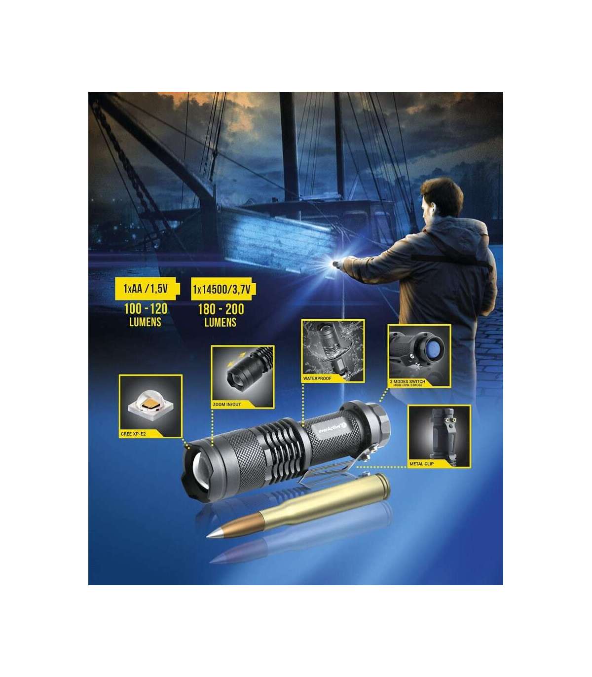 LED handheld flashlight everActive FL-180 "Bullet" with CREE XP-E2 LED