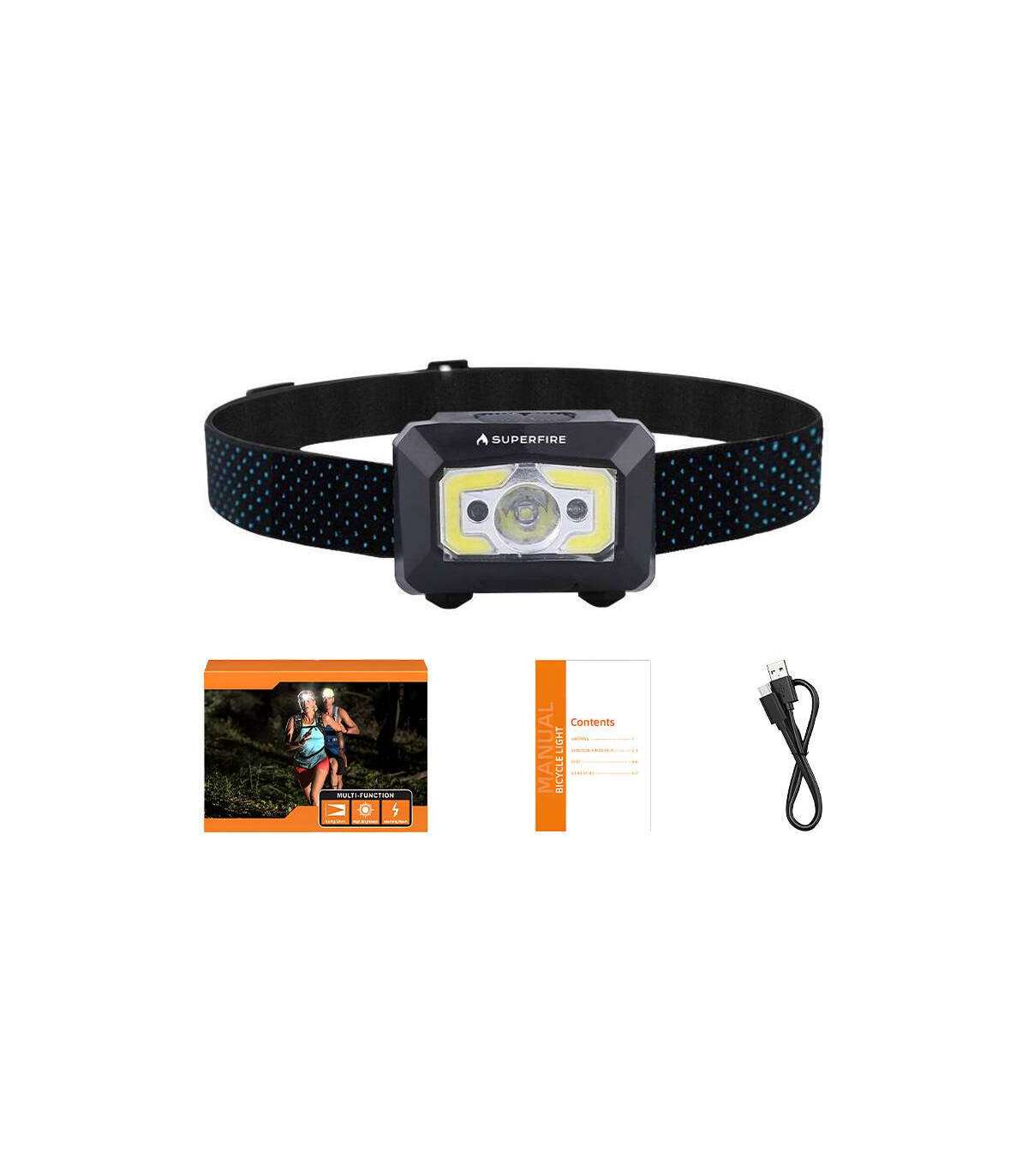 Headlight with non-contact switch Superfire X30, 340lm, USB