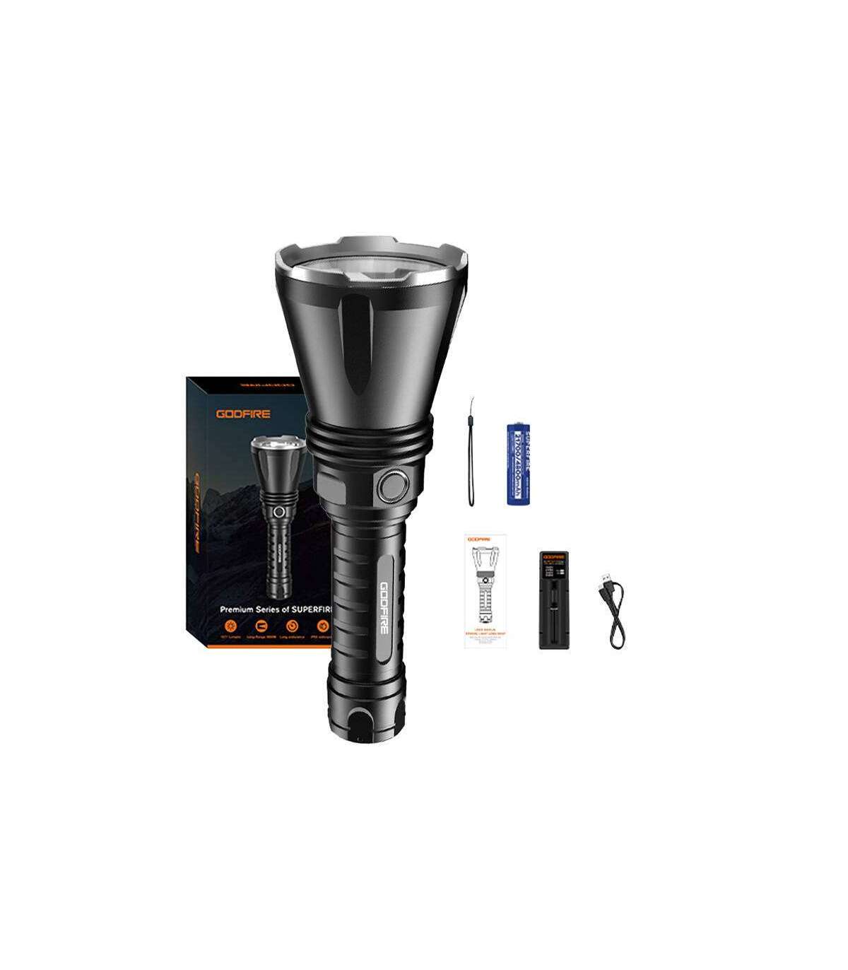 The Superfire TF01 flashlight is a high-quality device designed for users who need reliable and efficient lighting in a variety of conditions. The flashlight offers an impressive range of up to 1,000 meters in Turbo mode and various brightness levels to suit the user's needs. With a capacious 4800 mAh battery, the Superfire TF01 provides long-lasting operation, reaching up to 52 hours in Low mode.