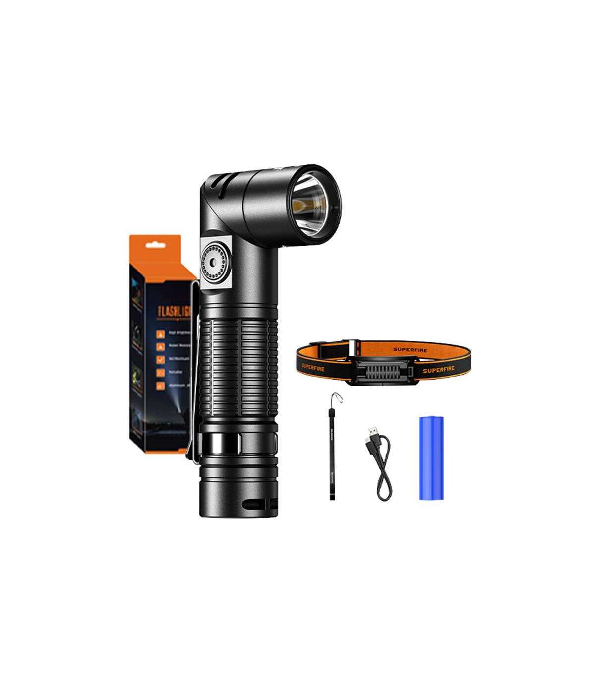 The Superfire G19-S features a robust housing made of high-quality aluminum alloy, making it resistant to drops and mechanical damage. This design ensures long life and reliability even in the toughest conditions. The flashlight is also lightweight and easy to carry, making it ideal for carrying in a backpack, on a belt or in a pocket. The device's housing has been additionally protected from water, allowing it to be used in the rain or during other adverse weather conditions.