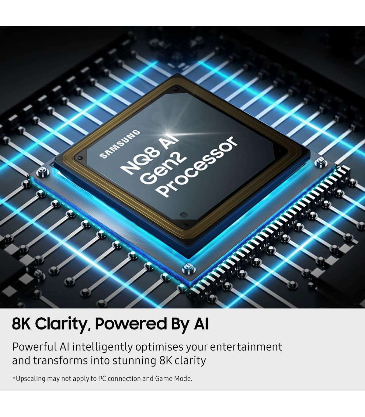 - 8K AI Upscaling & NQ8 AI Gen2 Processor: Powerful AI transforms your content into 8K, regardless of the content¹