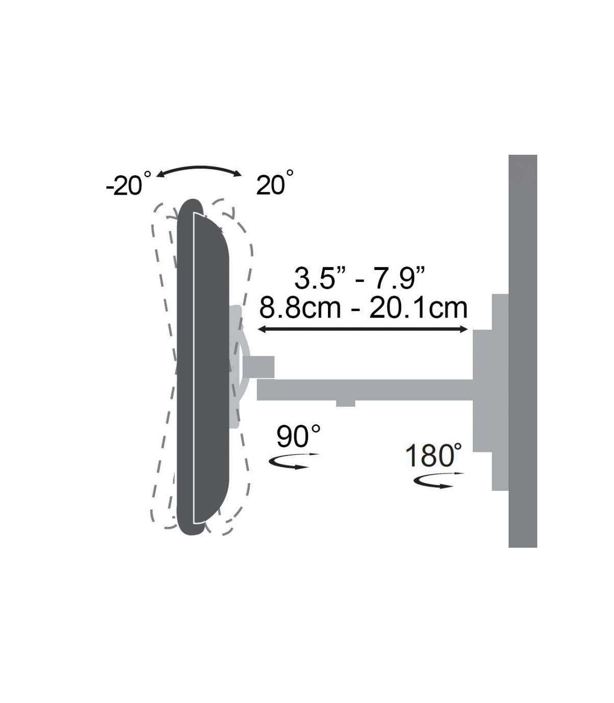 Pööratav: +90°/ -90°