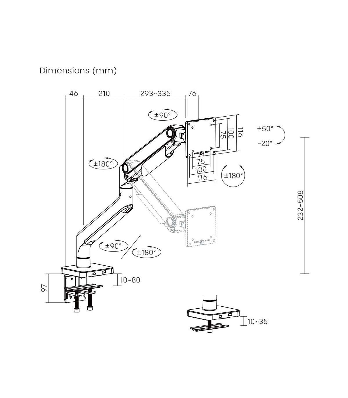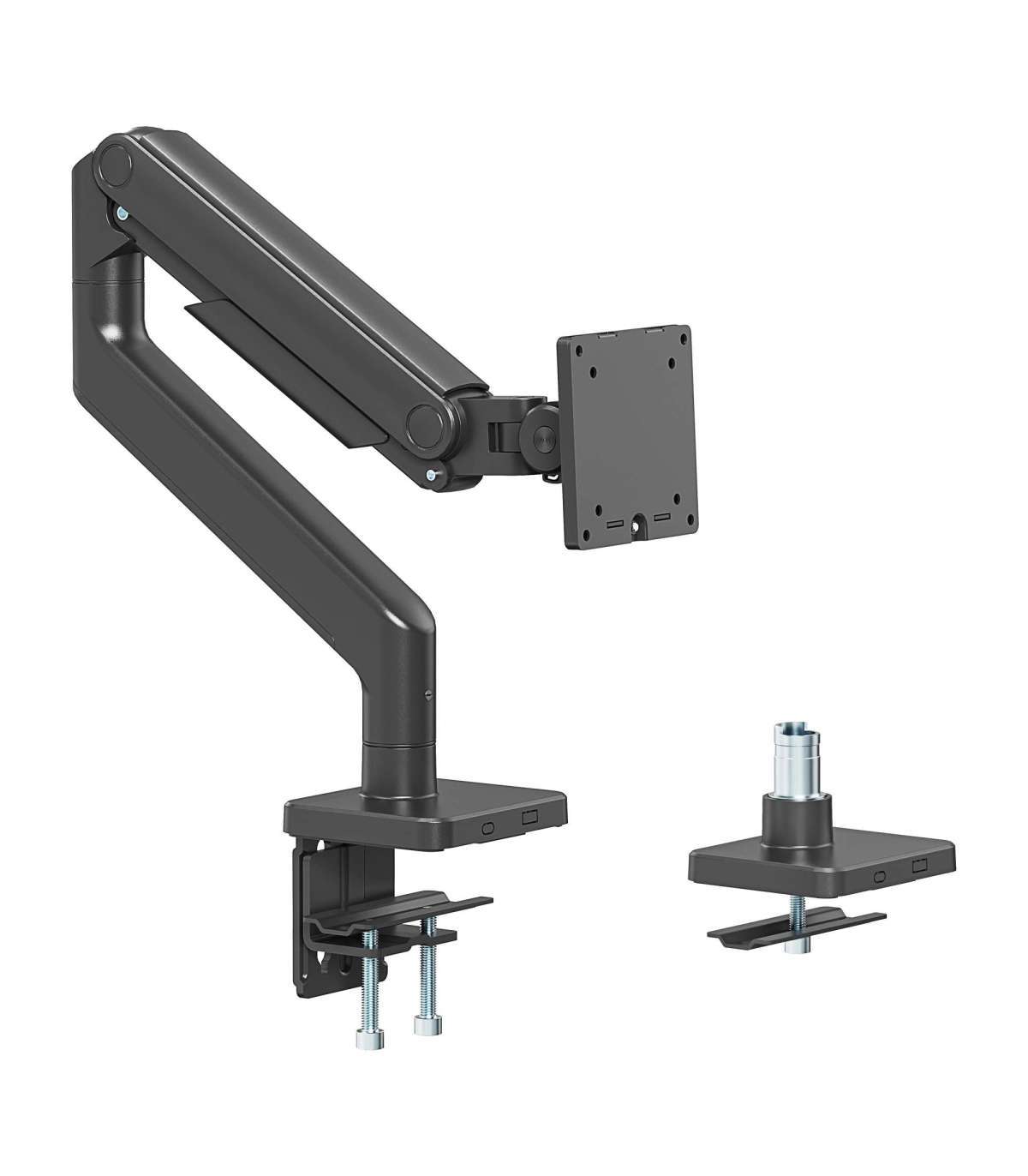 Sellel kinnitusel, mis on loodud monitori hõlpsaks paigaldamiseks, on vedruga vars, mis võimaldab reguleerida kõrgust, kallet ja pöörlemist, pakkudes teile ideaalset vaatenurka tootlikkuse ja mugavuse suurendamiseks.