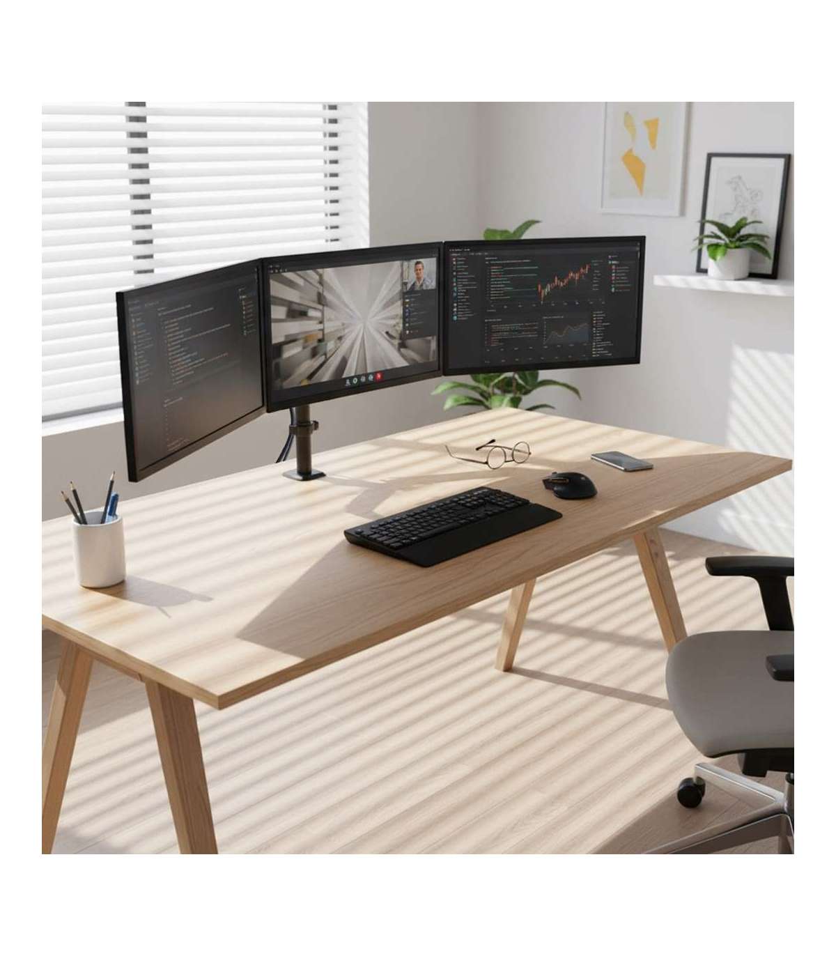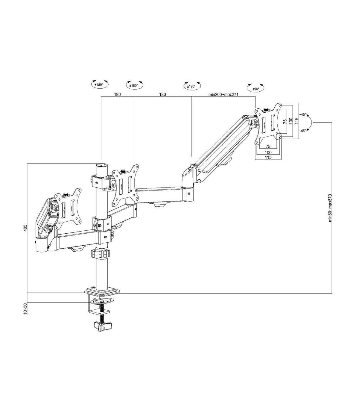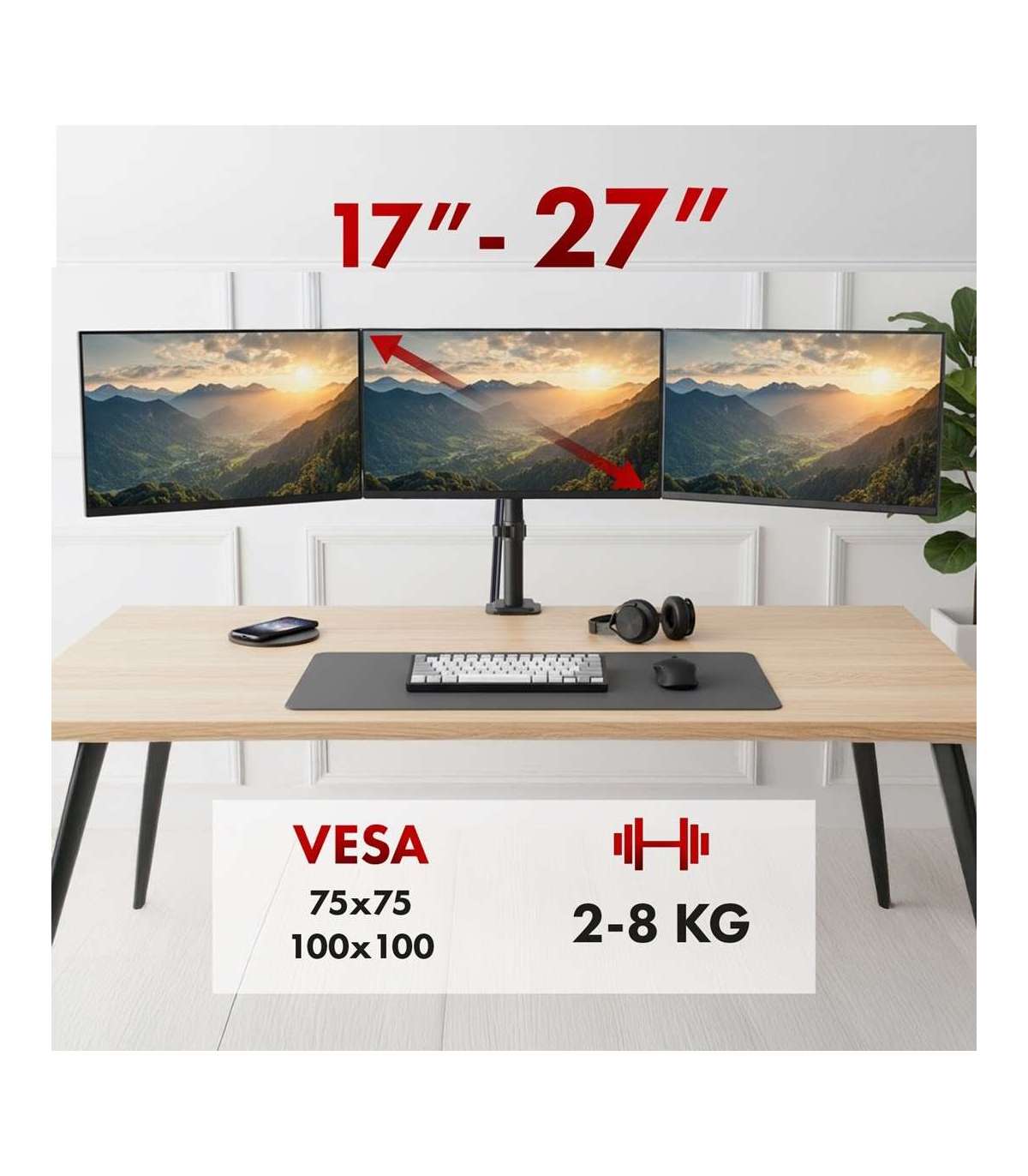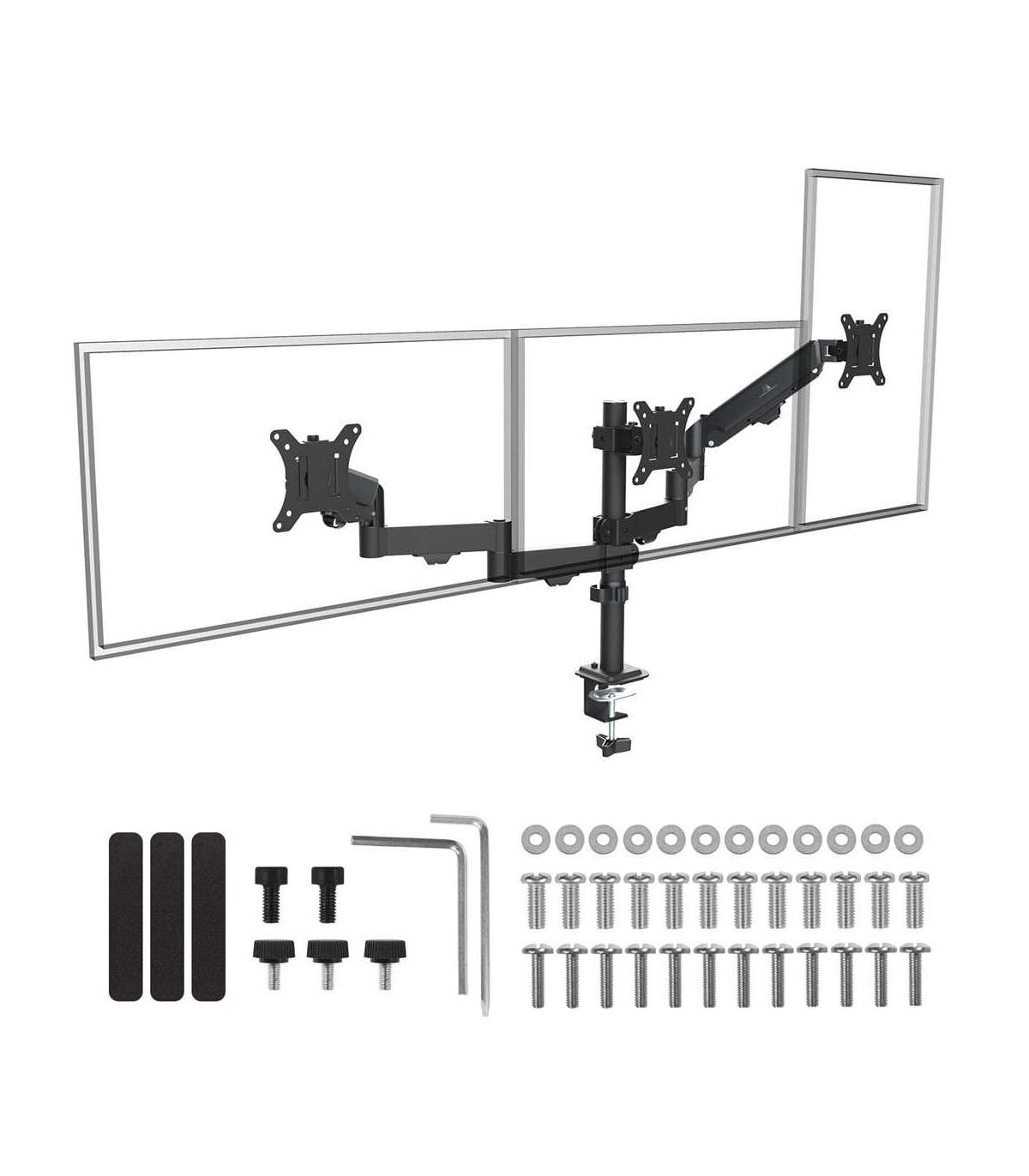 Maclean 3 monitor mount, gas spring, 17"-27", 2-8kg, black, MC-137