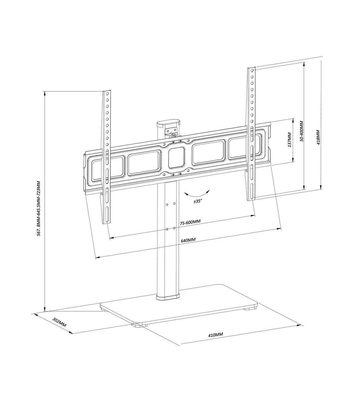 Maclean MC-386 Universal TV Stand Base for Cabinet Dresser Table Desk 32" - 75" 40kg VESA 35° Rotating Temepred Glass