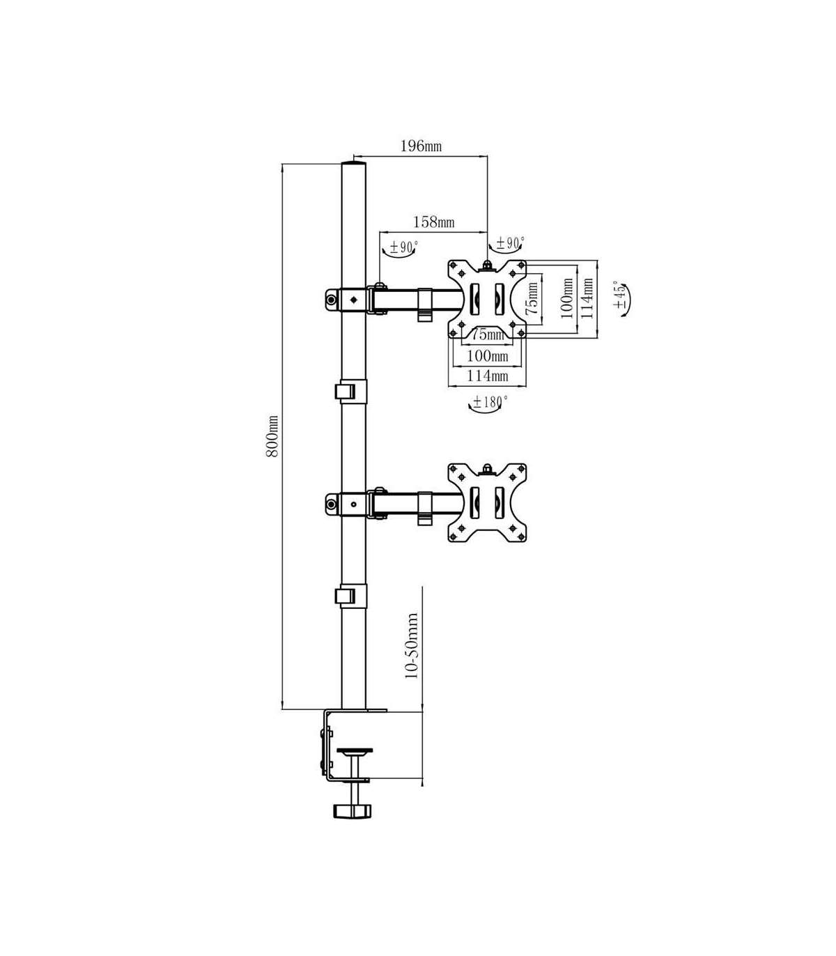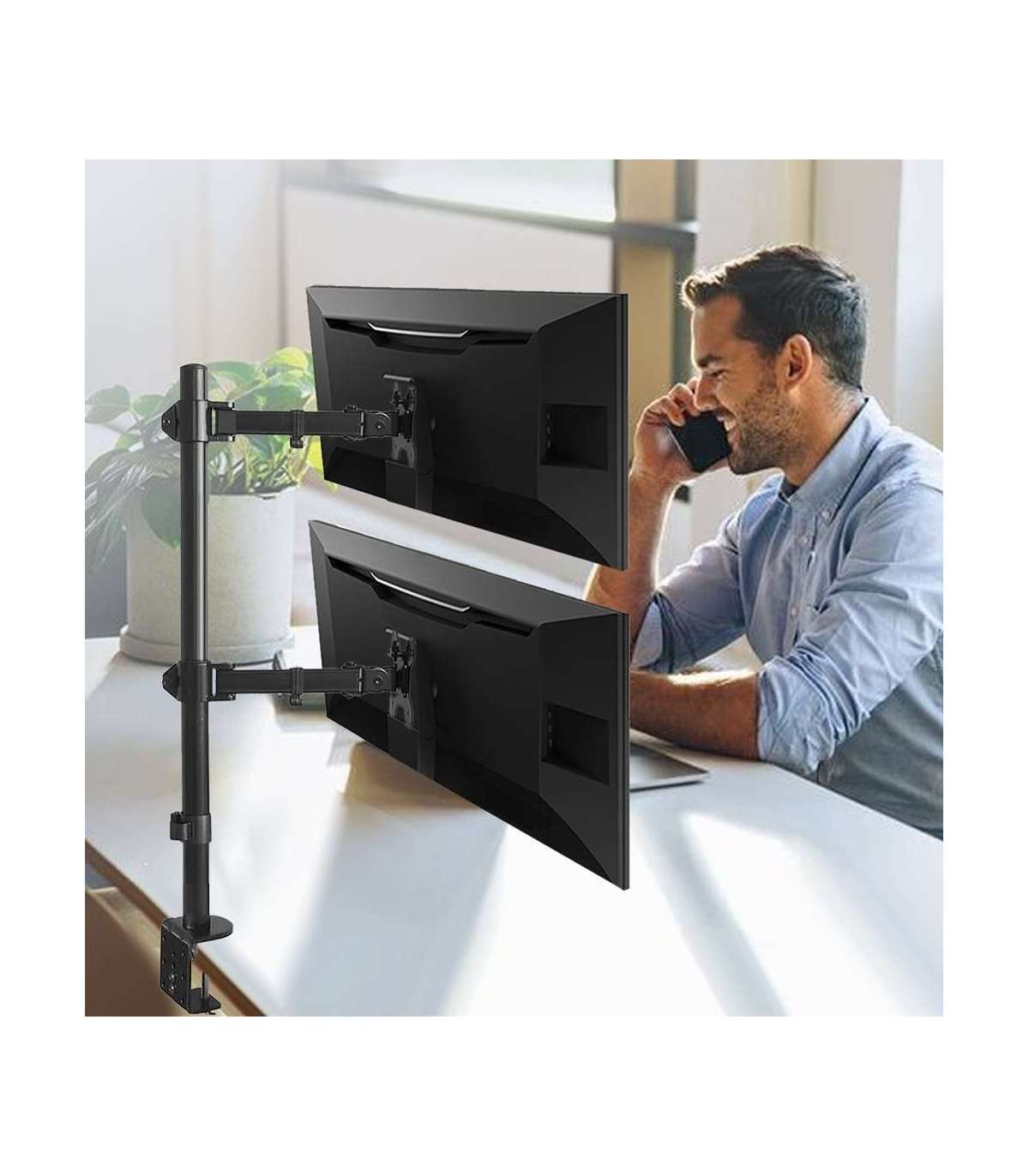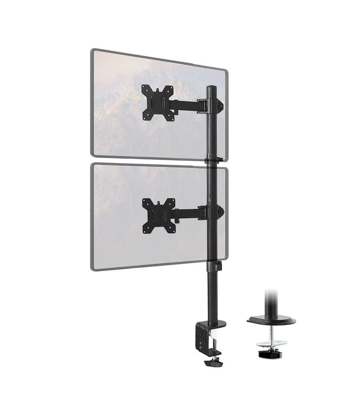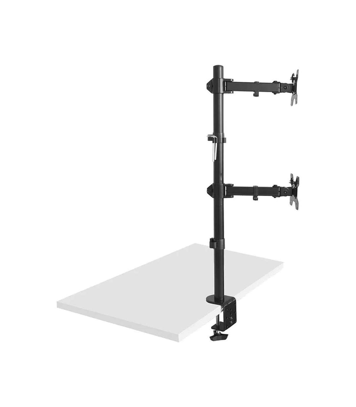 Maclean MC-967 Double Vertical Monitor Desk Mount Screen Holder max VESA 100x100, 13-27", 2x 9kg Powder Coated Tilting