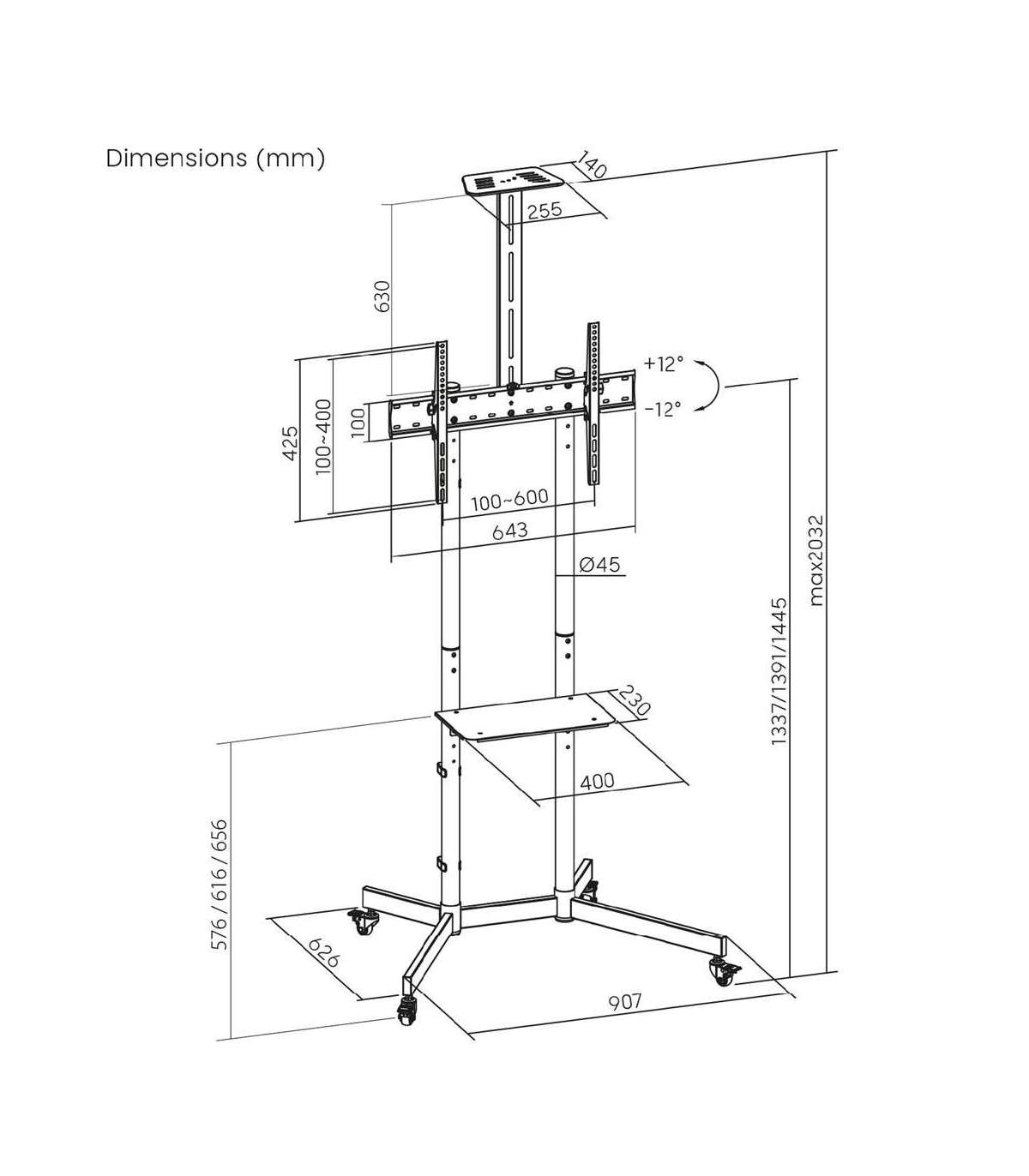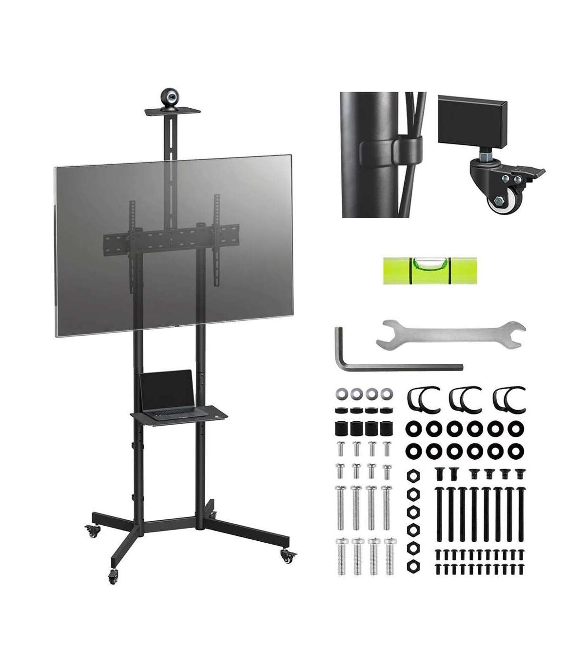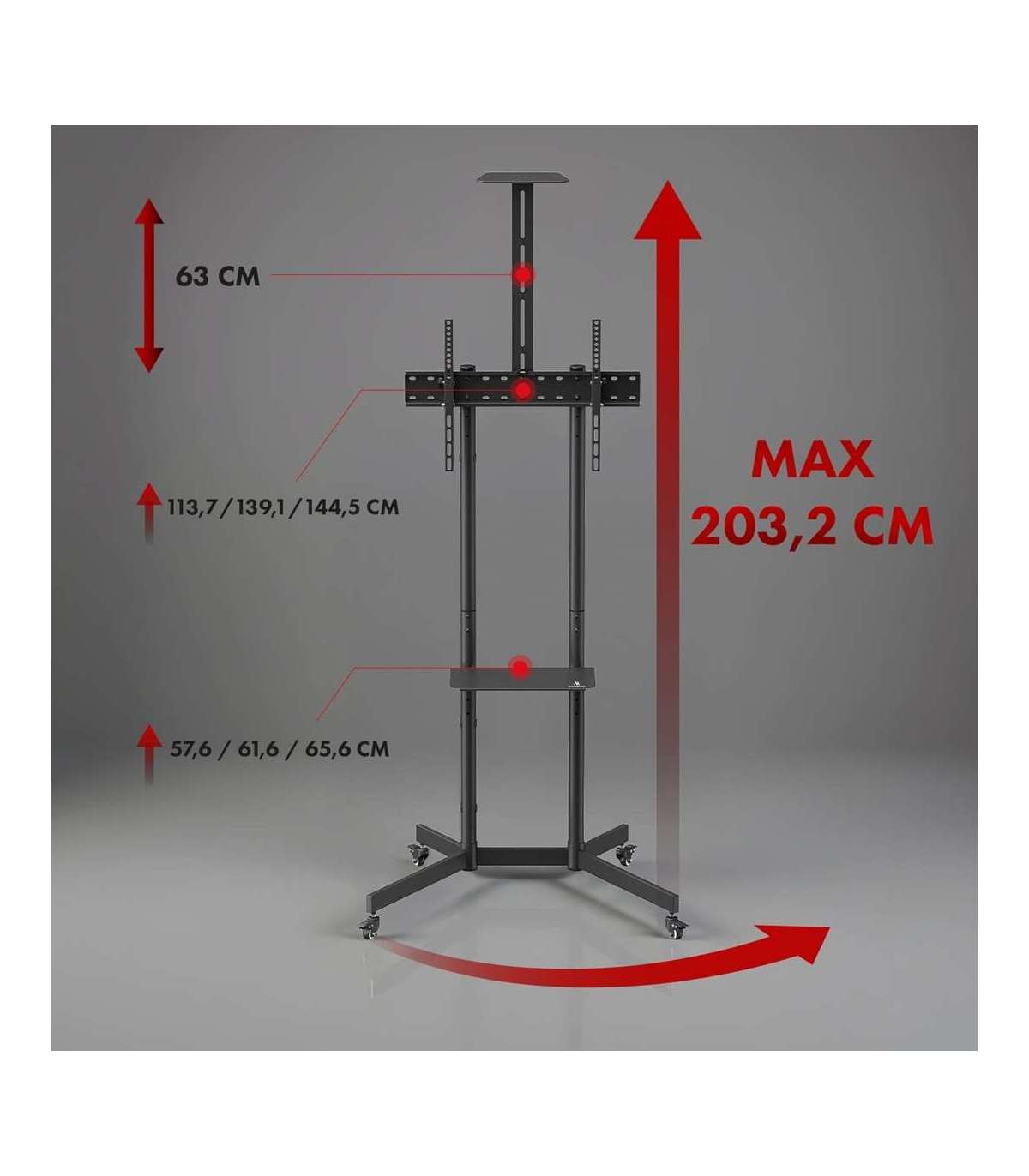 Maclean TV stand / cart, camera shelf, on wheels, 37-70", max load 45kg/5kg shelf, max. VESA 600x400, MC-113 B