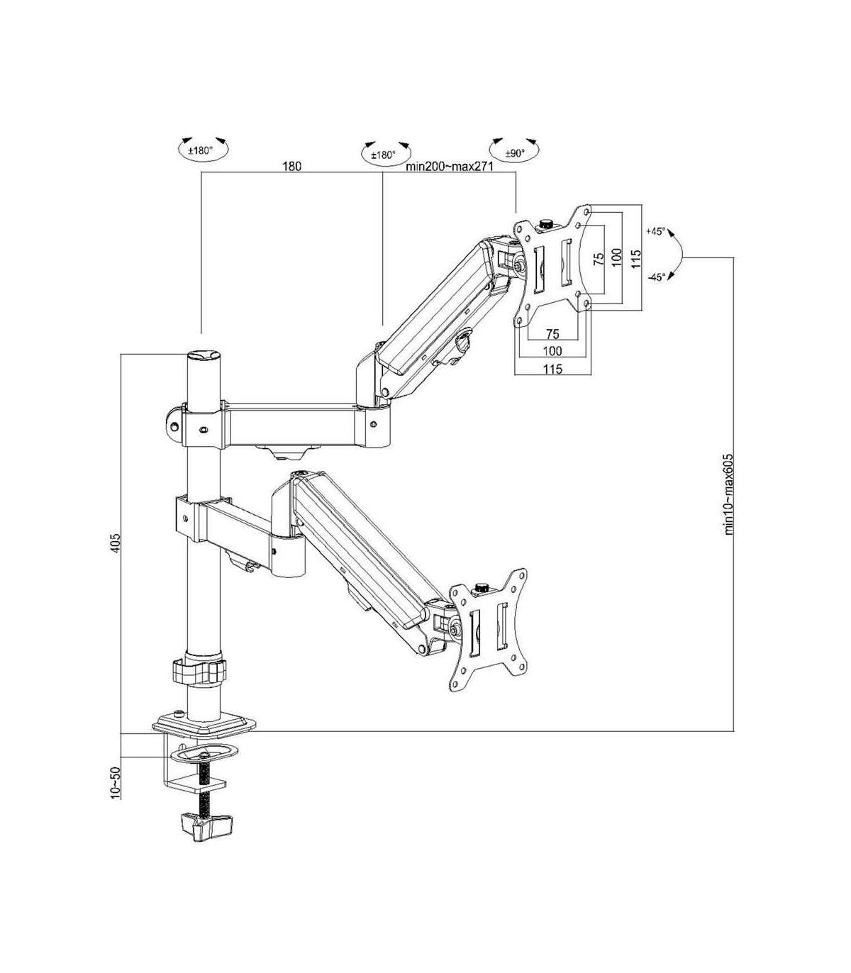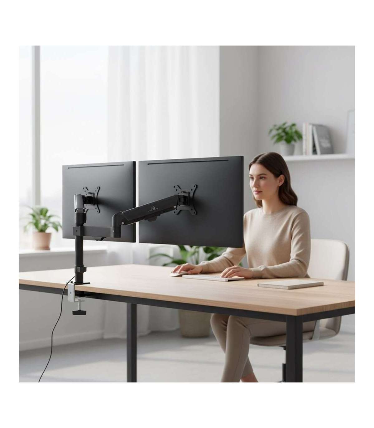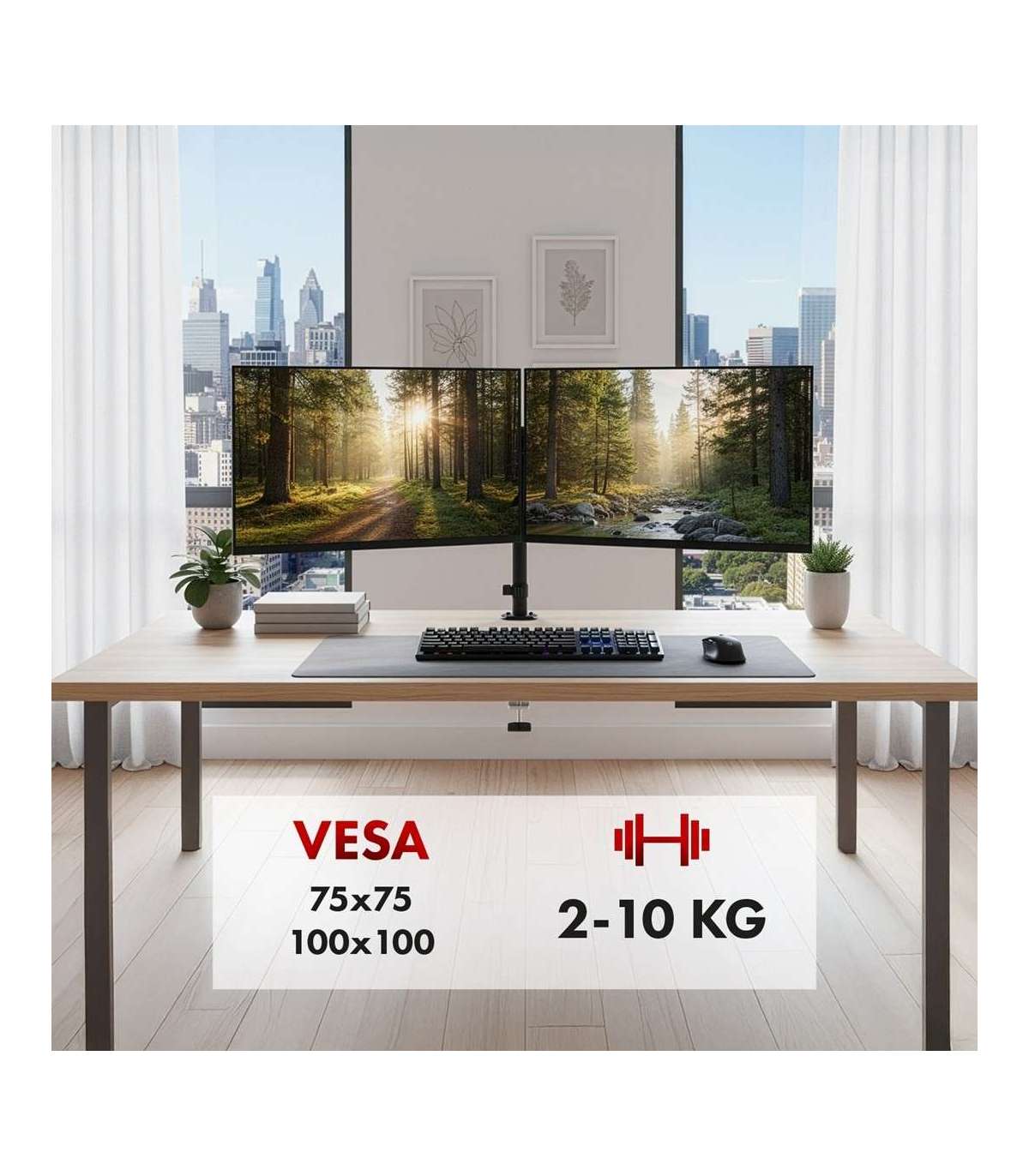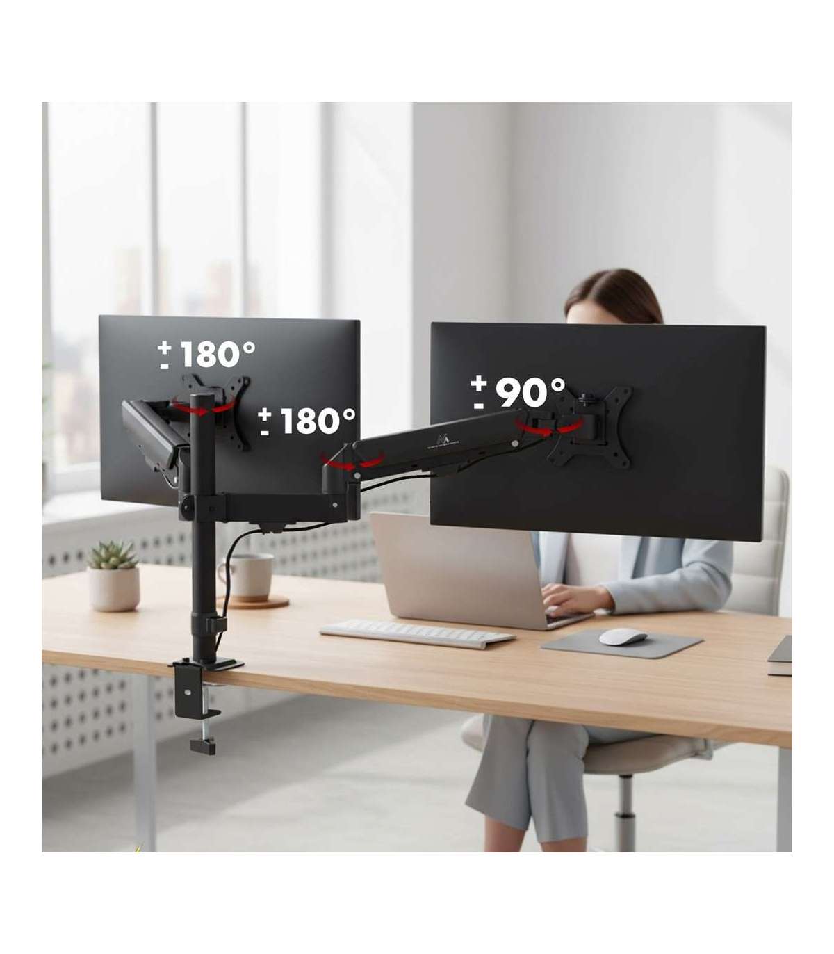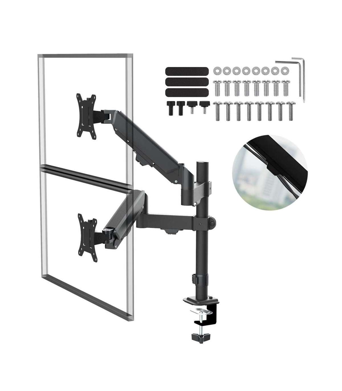 Maclean 2 monitor mount, gas spring, 17"-32", 2-10kg, black, MC-136