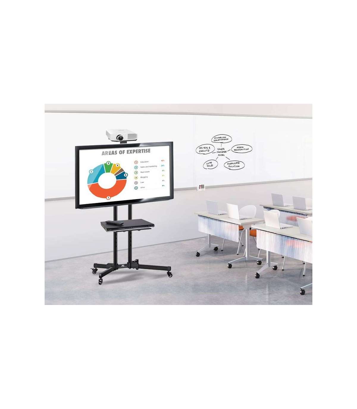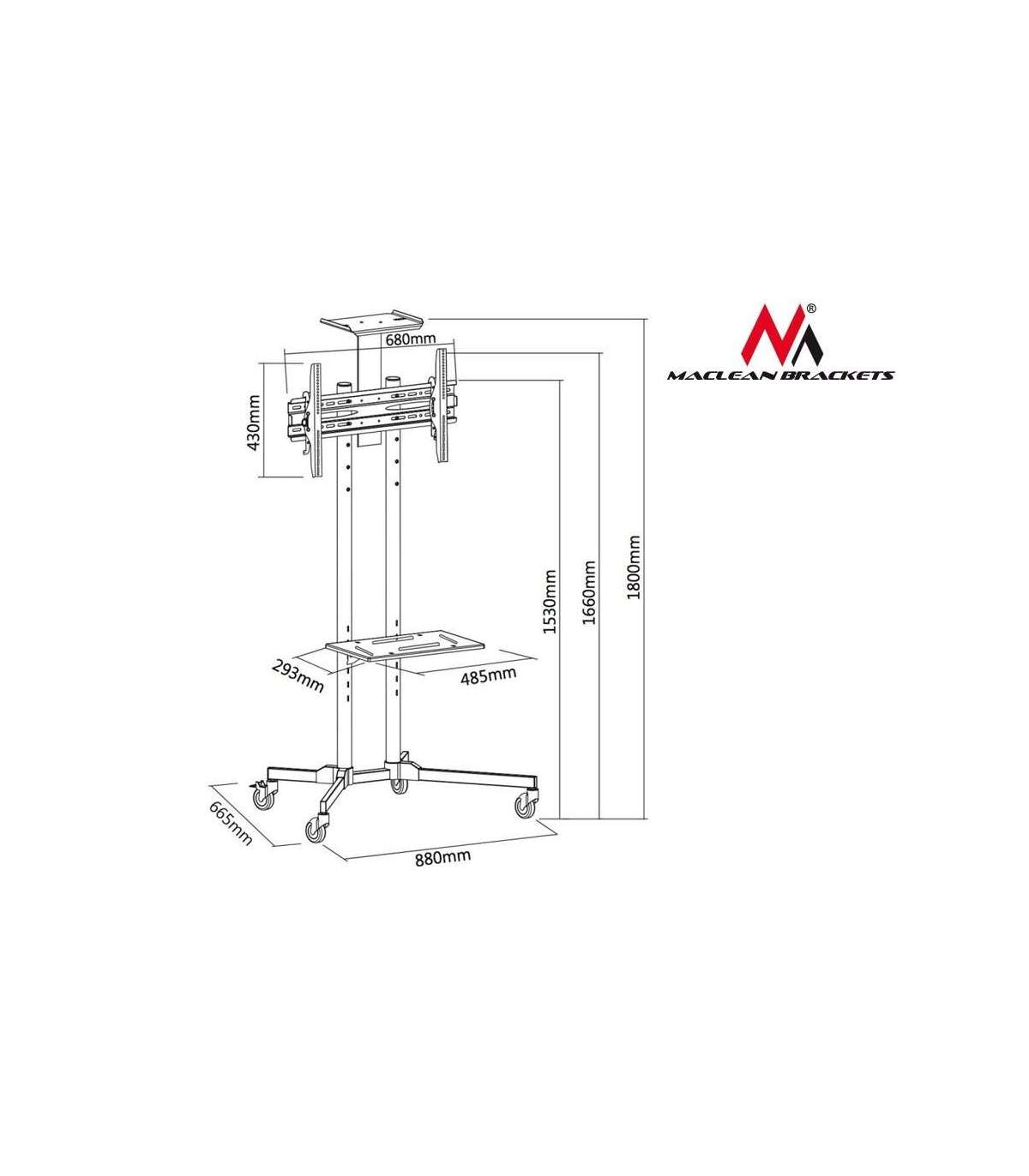 Maclean MC-661 Trolley TV Stand with Mounting Bracket and 2 Shelfs