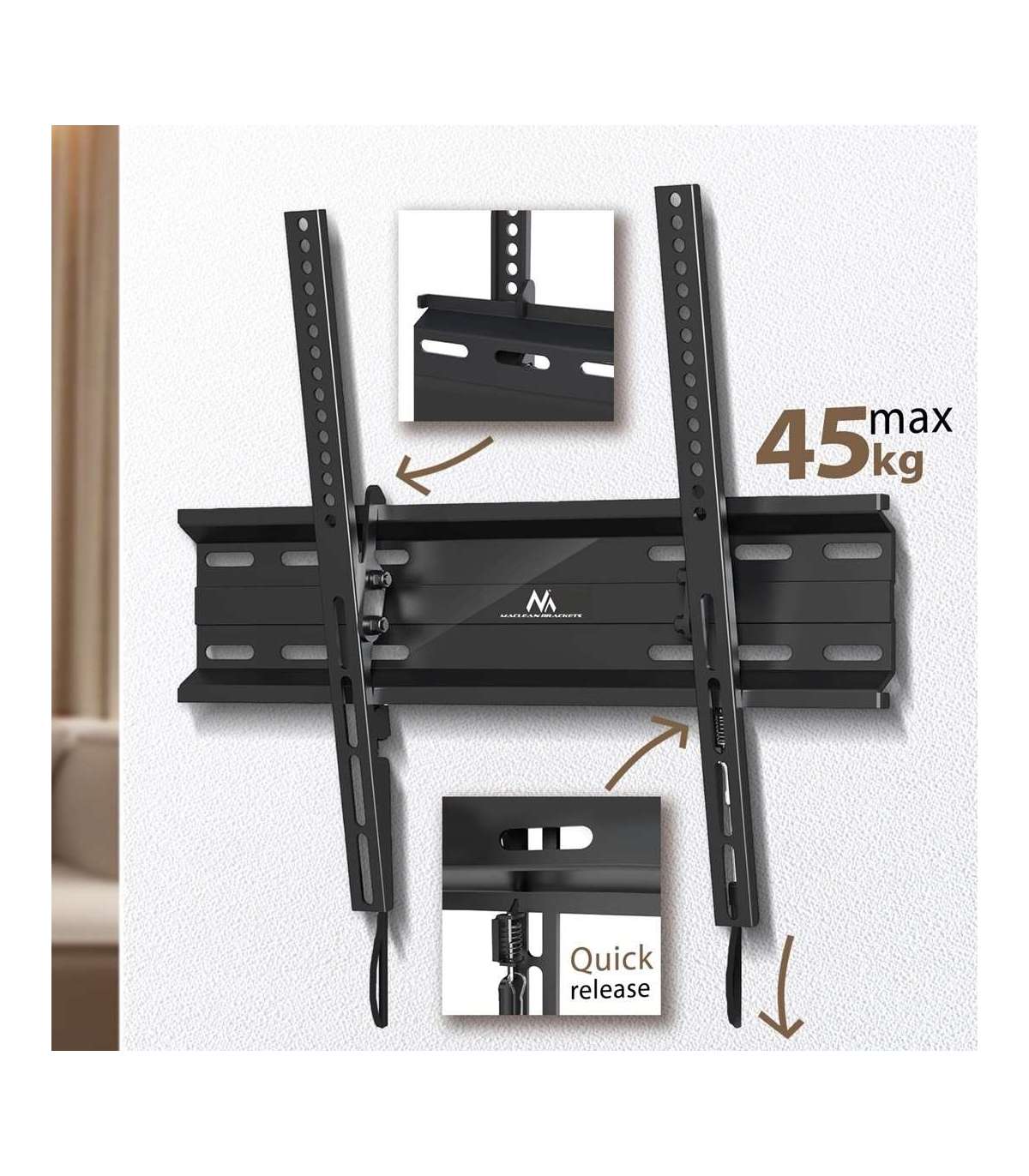 Maclean MC-748A TV or Monitor Mount, TV Wall Holder, Handle, max VESA 400x400, 32-70", 45kg, Black
