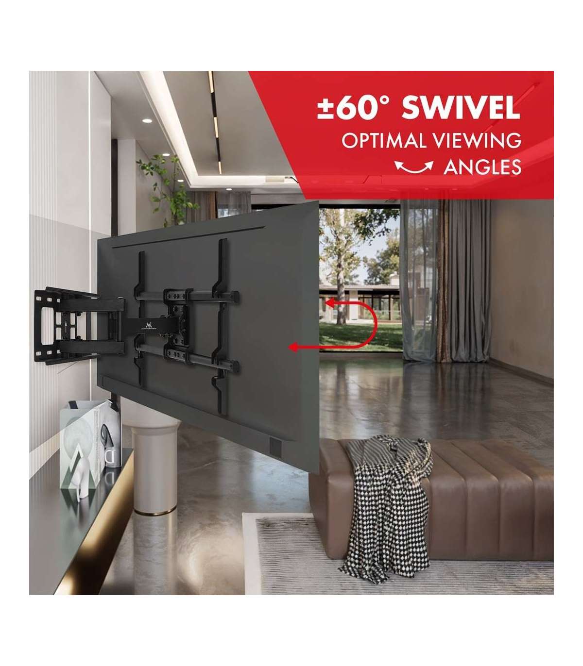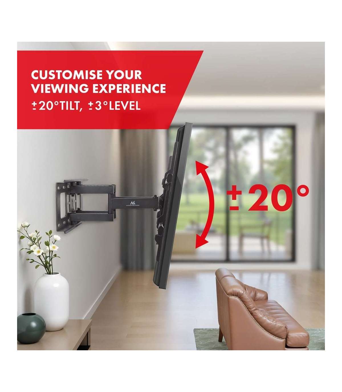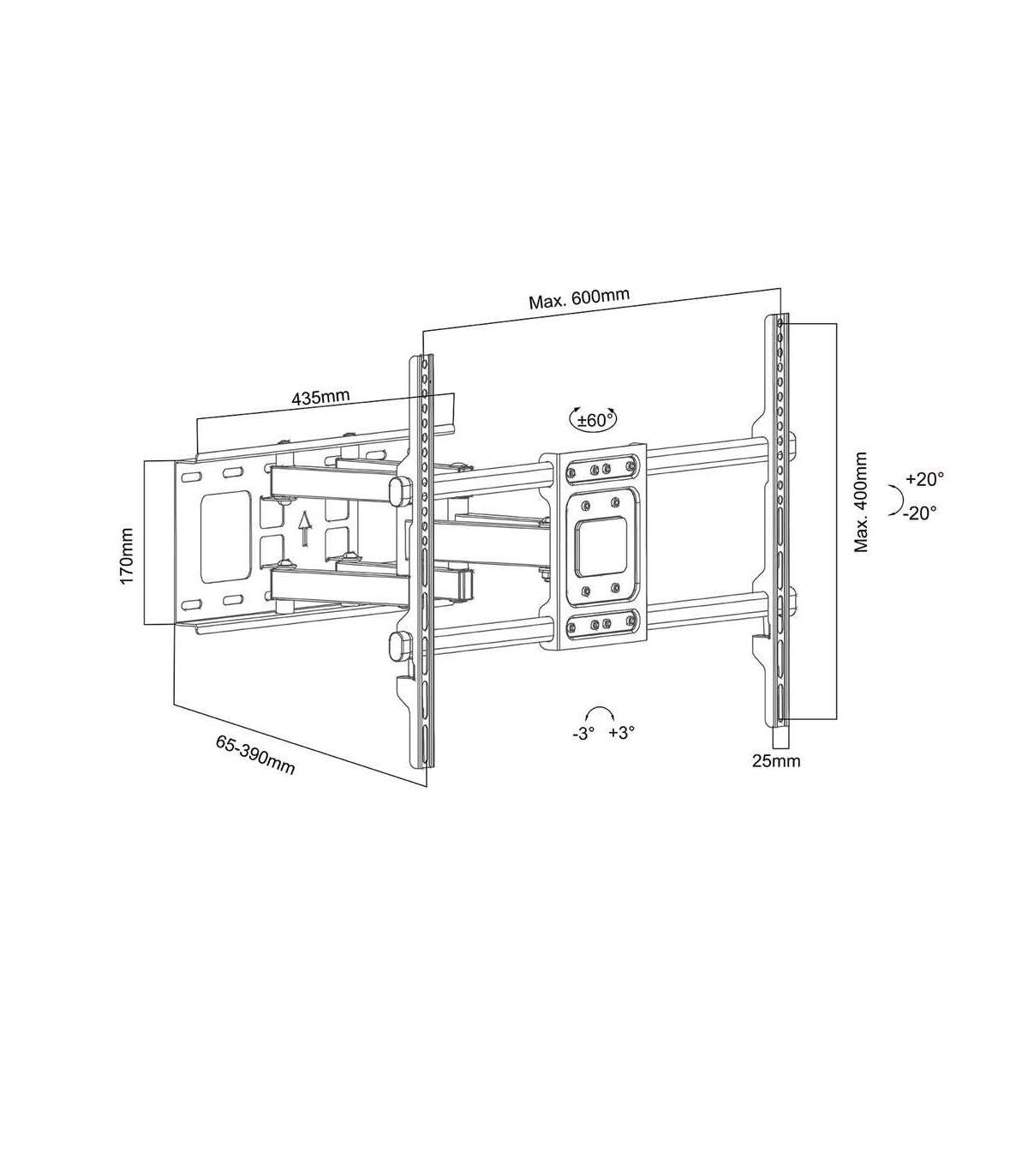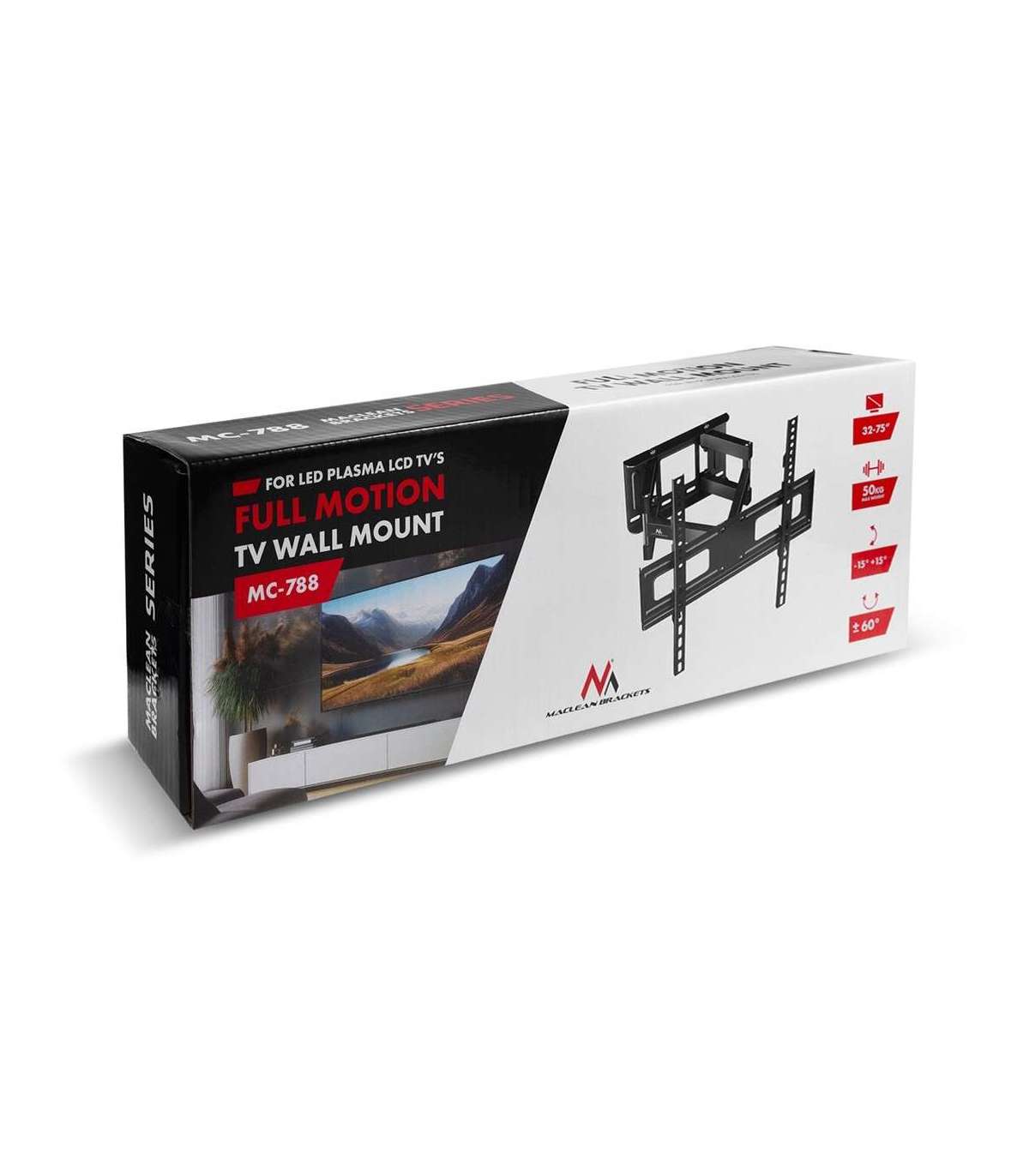 Maclean TV Mount, max VESA 600x400, 32-85", 60kg, horizontal and vertical angle adjustment, profile 65-390mm, black,
