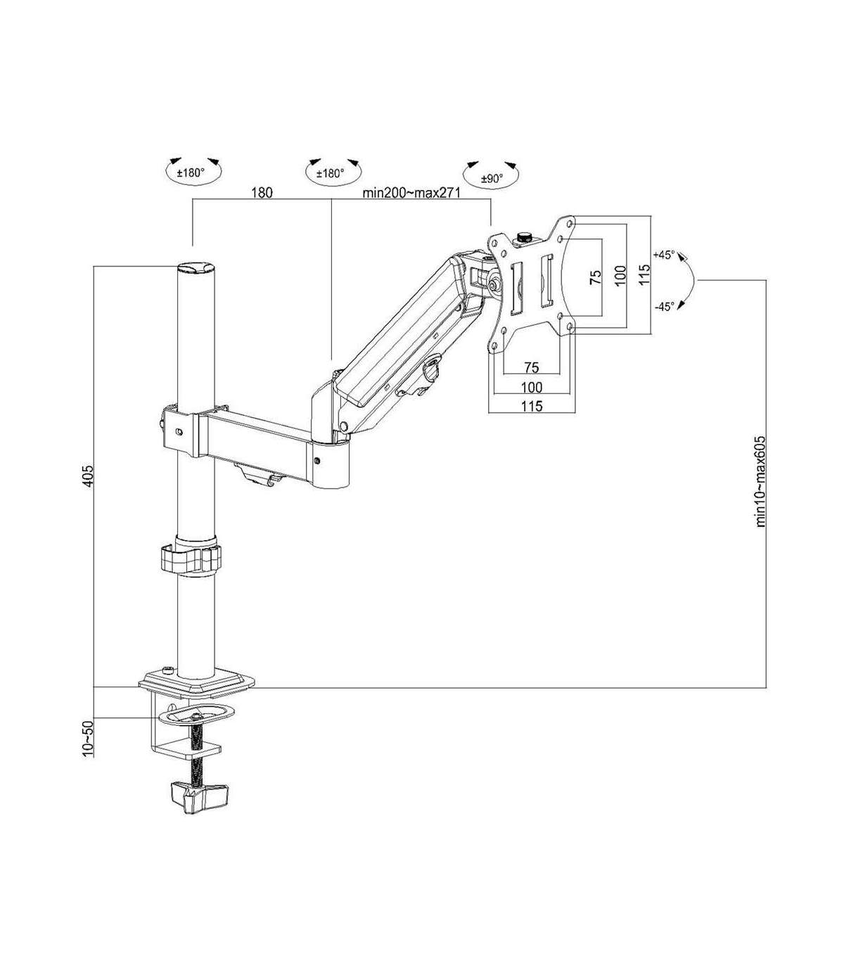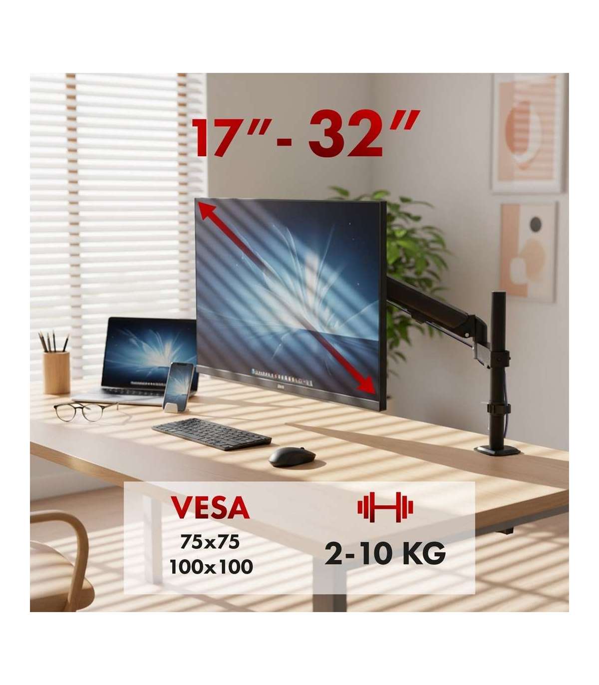 Maclean monitor mount, gas spring, 17"-32", 2-10kg, black, MC-135