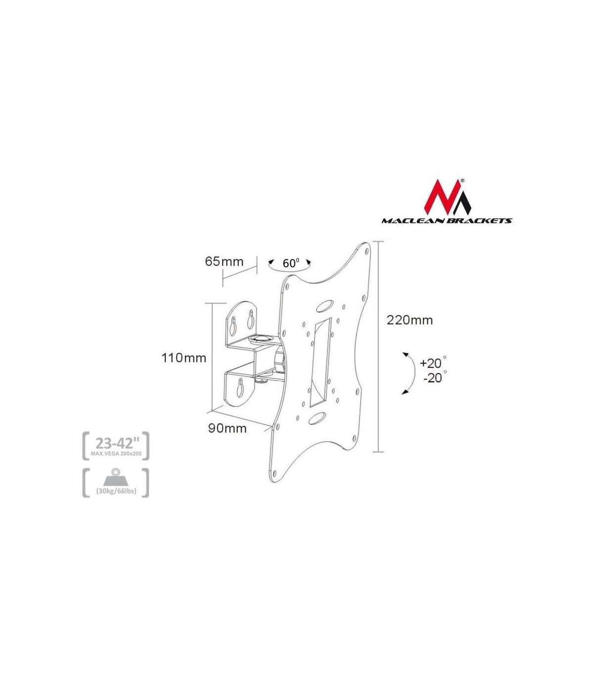Maclean MC-501A Universal Wall TV Bracket 23-42" uo to 30kg vesa 200x200 Black
