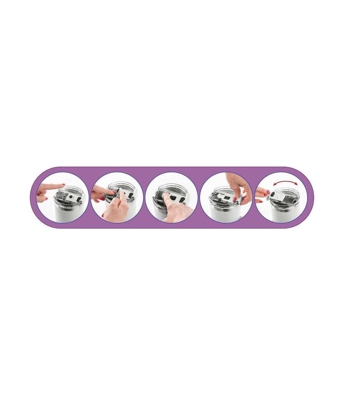 Kruusil on ergonoomiline käepide ja praktiline sisemine kõrs, mida saab hõlpsalt sisse tõmmata. Jooke saab tarbida kas kõrre kaudu või kaane suletava ava kaudu. Loodud kuumade või külmade jookide mugavaks transportimiseks. Roostevabast terasest sisu muudab termokruusi praktiliselt hävimatuks. Kõrs on mõeldud kasutamiseks ainult külmade jookidega.