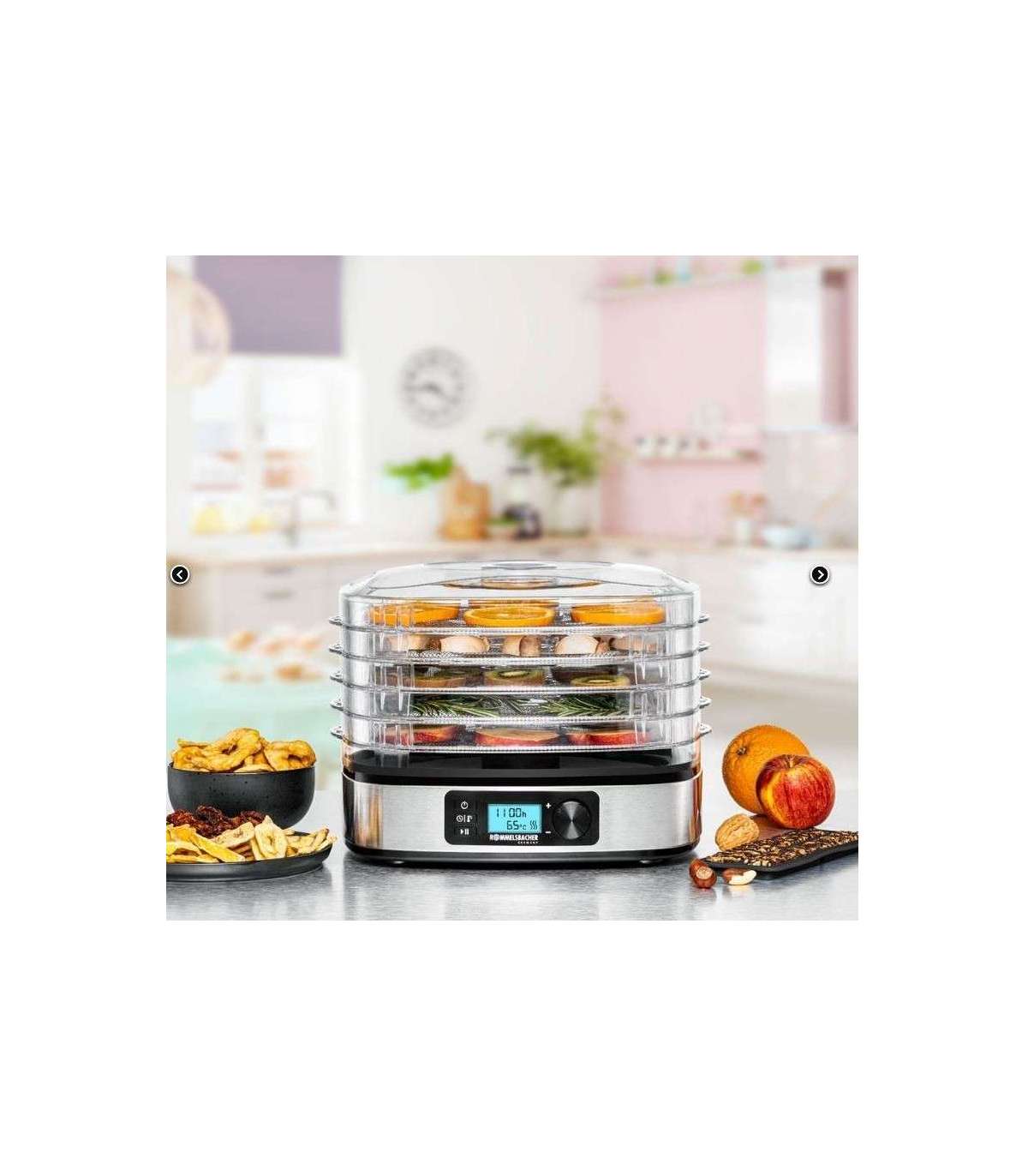Kompaktne ja kaasaegse välimusega digitaalne saksa firma dehüdraator puuviljade, köögiviljade, maitsetaimede, seente jm õrnaks kuivatamiseks.