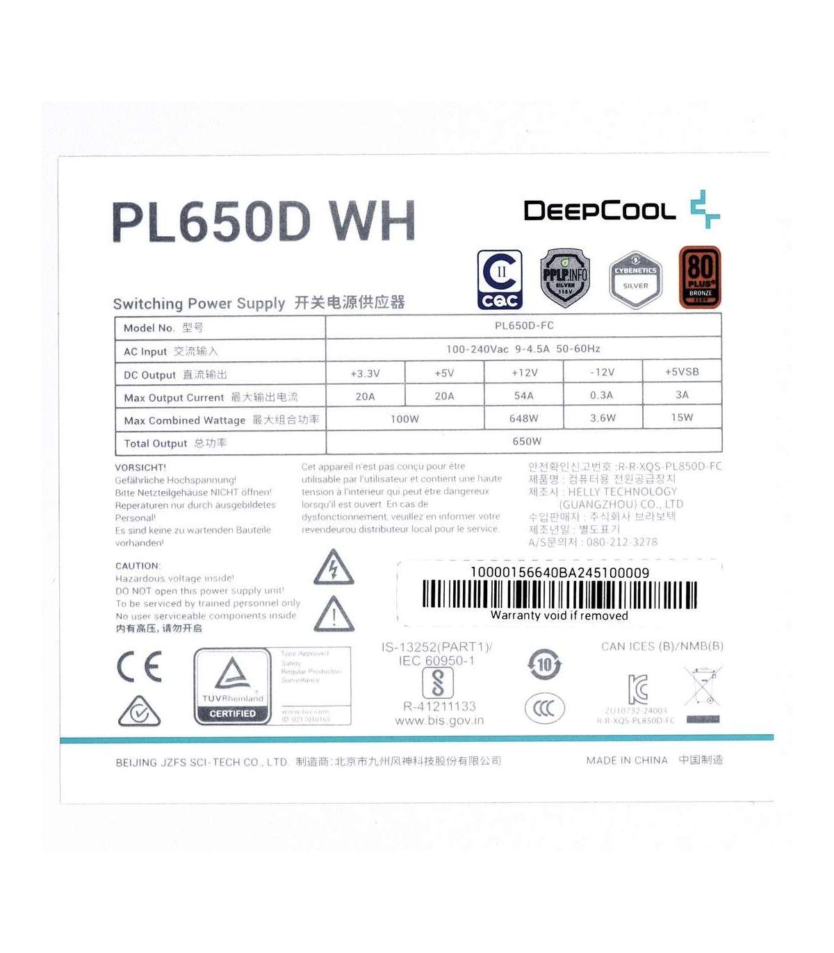 DeepCool PL650D power supply unit 650 W 20+4 pin ATX ATX White