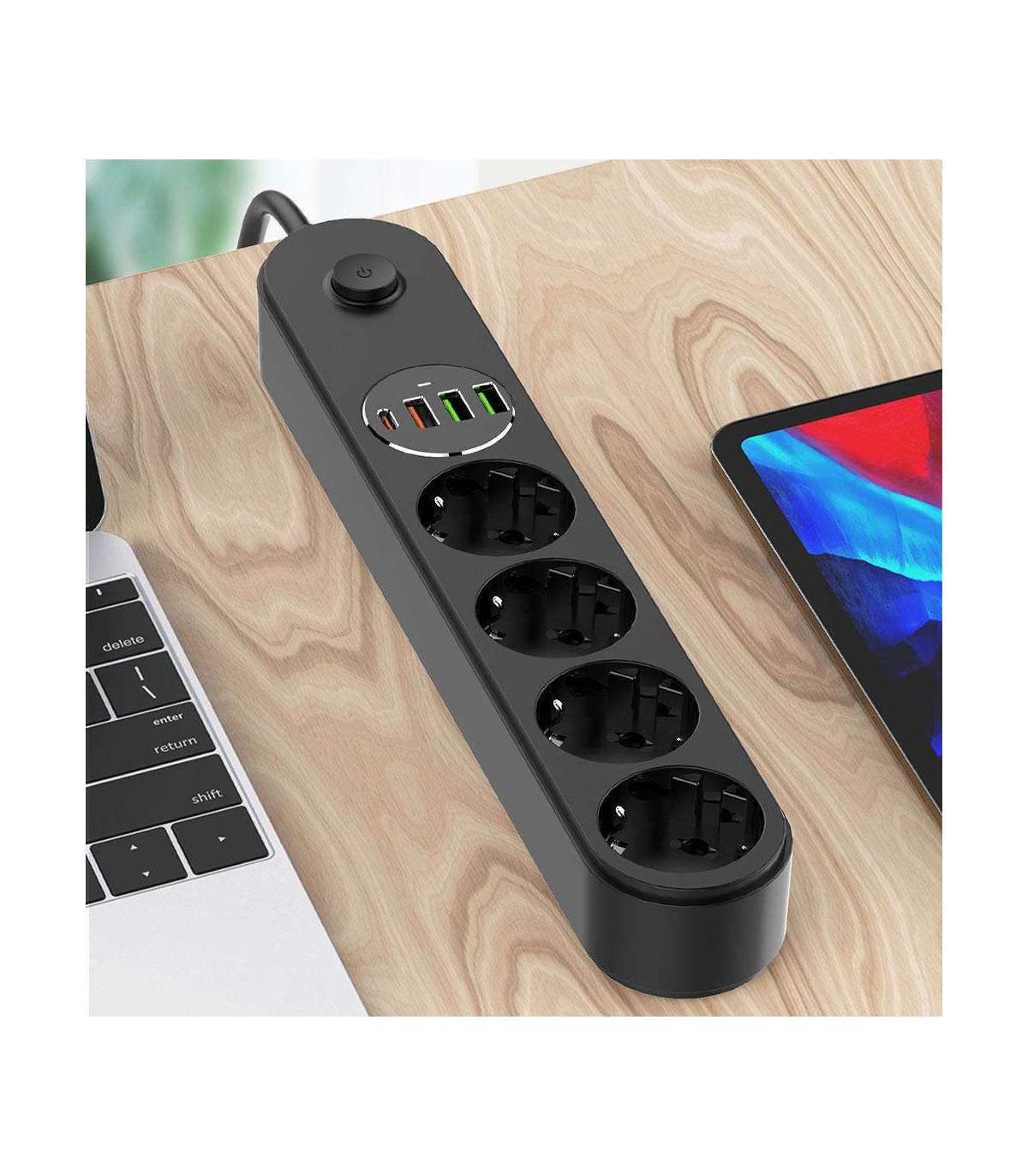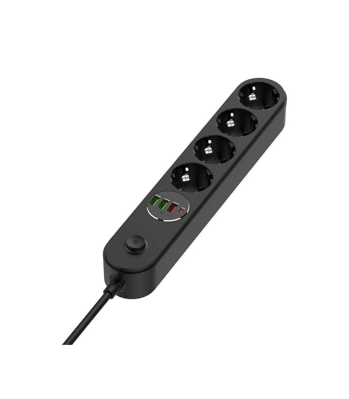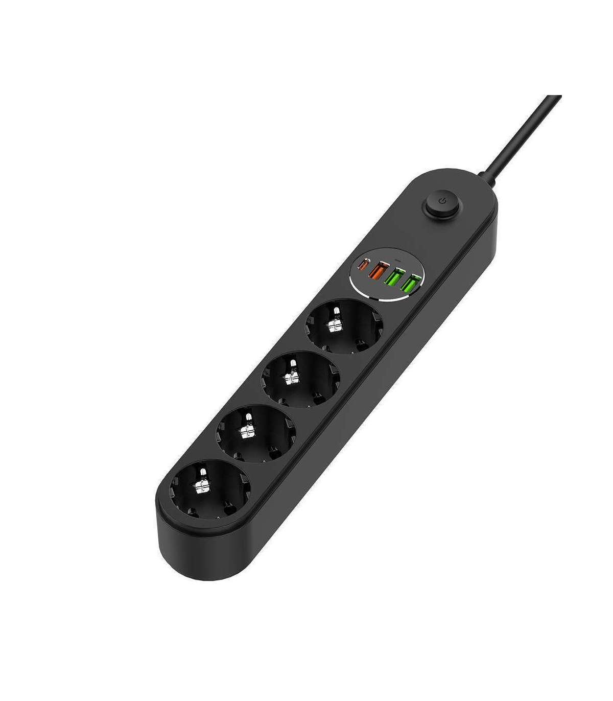 - 1 USB Type-C (PD), 1 USB-A (QC3.0), 2 USB-A