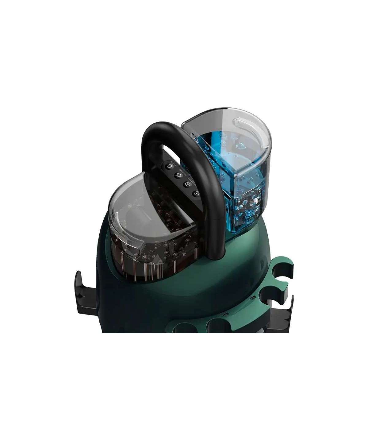 The vacuum cleaner is equipped with 2 tanks: for clean water with a capacity of 1600 ml and for dirty water - with a capacity of 1400 ml. As a result, the dirty water returns to a separate container, and you can be sure that the surfaces in your home are thoroughly cleaned.