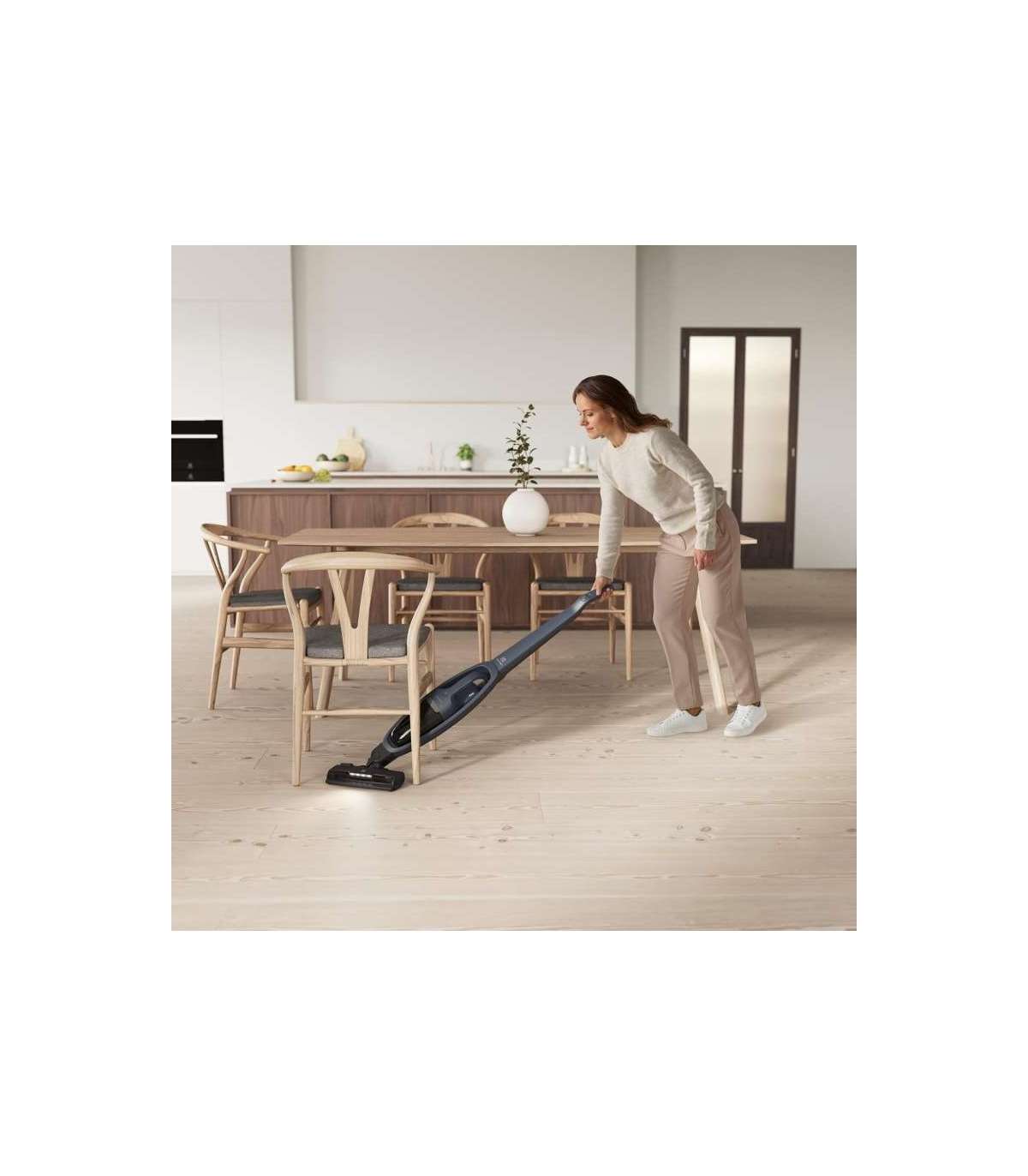 Electroluxi seeria 500 juhtmeta tolmuimeja tagab hõlpsa juurdepääsu kompaktsele käsitolmuimejale ja seadme küljes hoitavatele tarvikutele, võimaldades teil põrandat puhastades võtta hetkega ette raskesti ligipääsetavate kohtade puhastamise ja asuda siis uuesti põranda kallale. Tihendatud otsikusüsteem tekitab kiirema õhuvoolu, mis eemaldab tolmu vaevata ka kõige kitsamatest kohtadest, kogudes pragudest tolmu seitse korda tõhusamalt. Teljeline tsüklontehnoloogia tagab kompromissitu töö kogu koristamise ajal, isegi kui tolmuanum saab täis: täitumisel säilib maksimumvõimsust kasutades 99% algsest puhastusjõudlusest. Hermeetiline otsikusüsteem tekitab tugevalt imeva õhuvoolu. Paindlik ja funktsionaalne disain pakub koristustööl mugavust, ergonoomilisust ja head manööverdatavust. Filtreerimissüsteem eemaldab kuni 99% suurematest kui 1 µm tolmuosakestes, et tagada õhu maksimaalne puhtus. LED-tuled DustSpotter™: LED-tuledega otsik DustSpotter™ aitab näha ka kõige väikesemat puru või tolmu hämarates nurkades. Funktsioon Brush Roll Clean võimaldab lihtsalt rullikult karvu lahti lõigata. Vabanege rullikule takerdunud loomakarvadest või juustest neid puudutamata. Vajutage lihtsalt jalaga harjarulliku puhastamise nuppu ja lõikurnuga lõikab harjarullikule takerdunud juuksed lahti.
