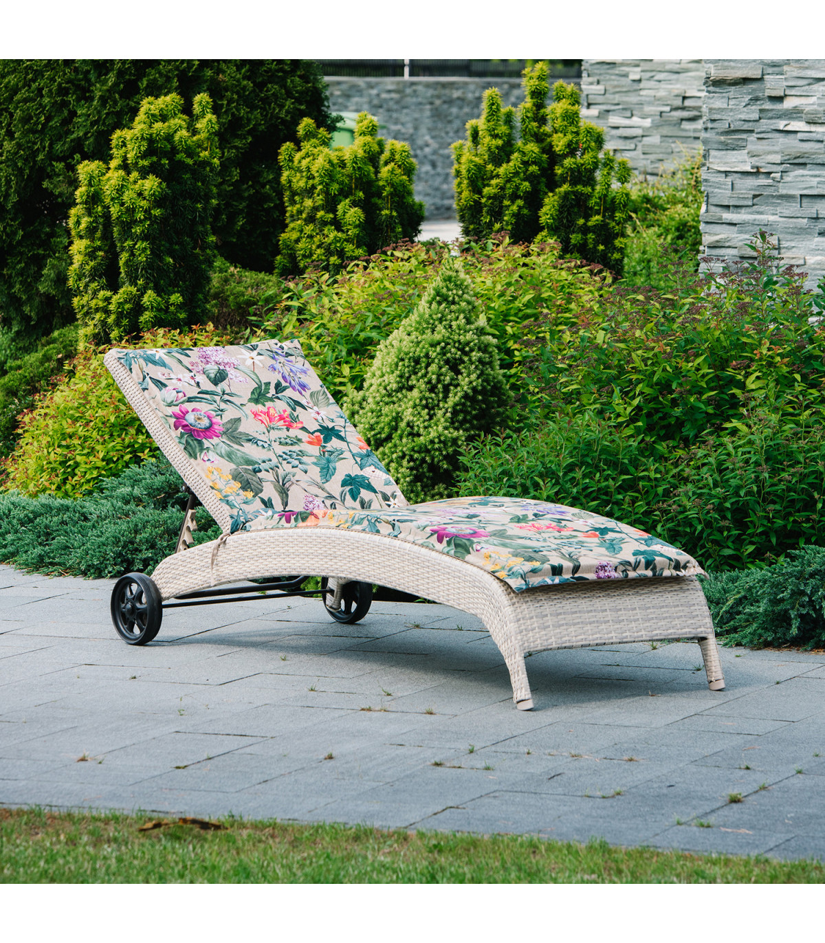 Lamamistooli kate AMAZONIA 55x190x5cm, volangiga, lilled bee˛il põhjal, 50%polüester/ 50%puuvill