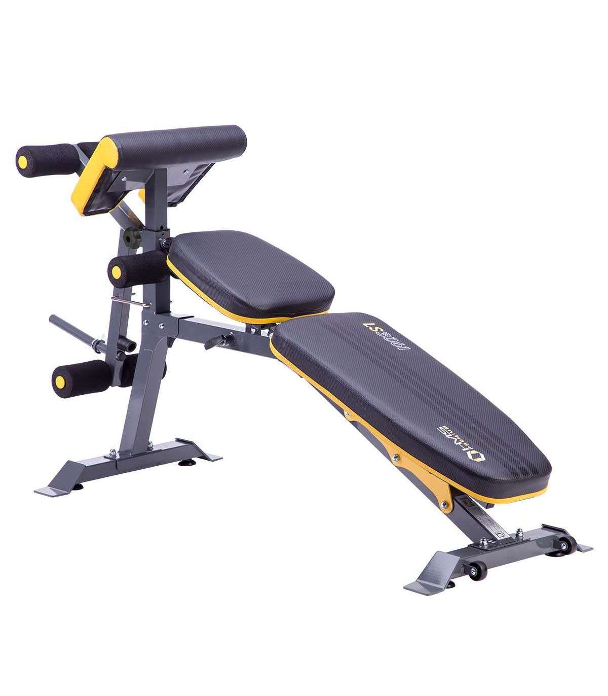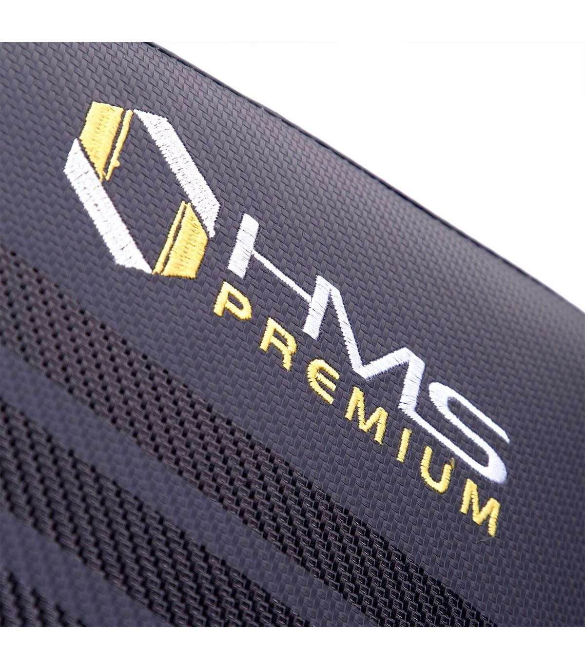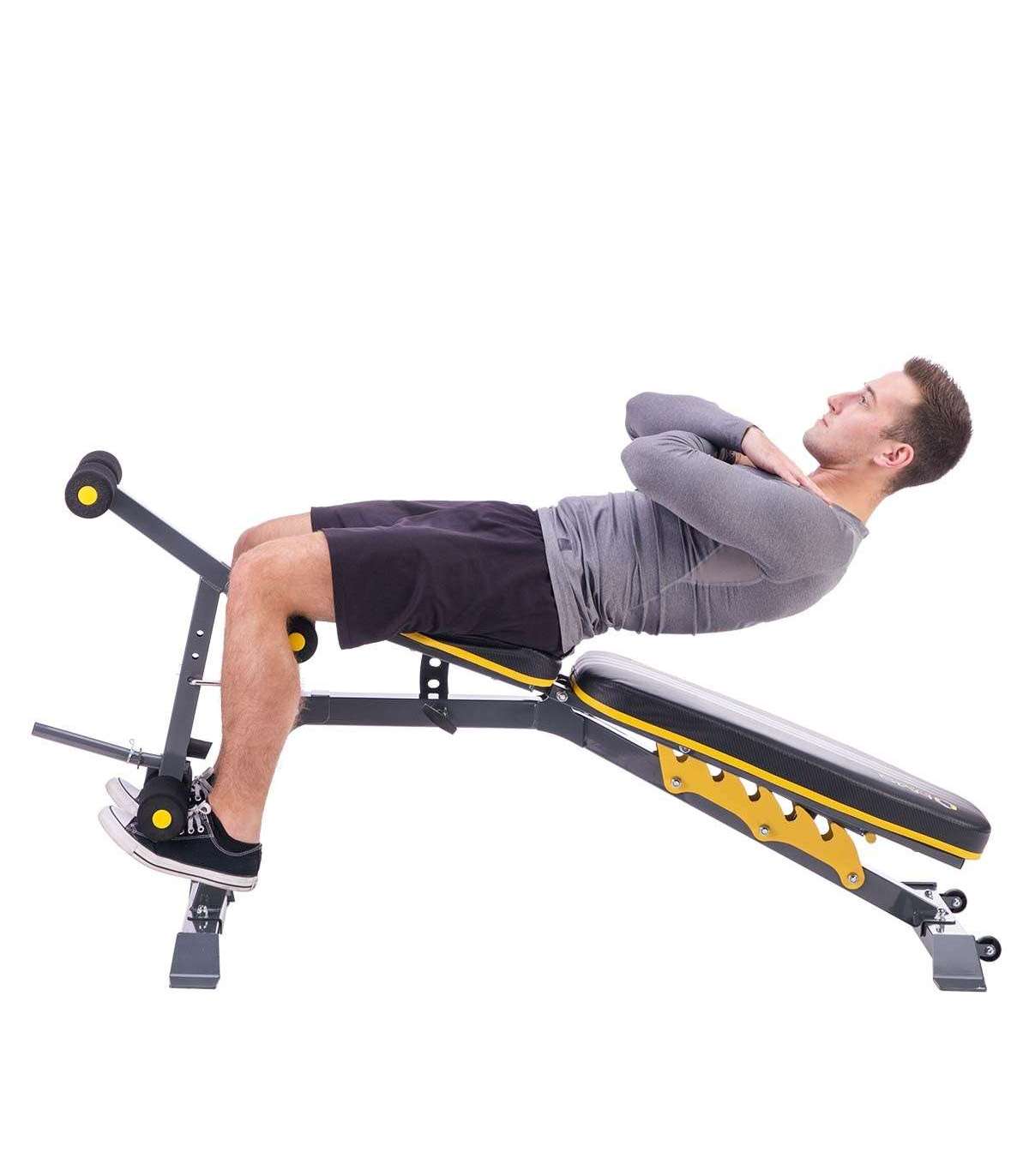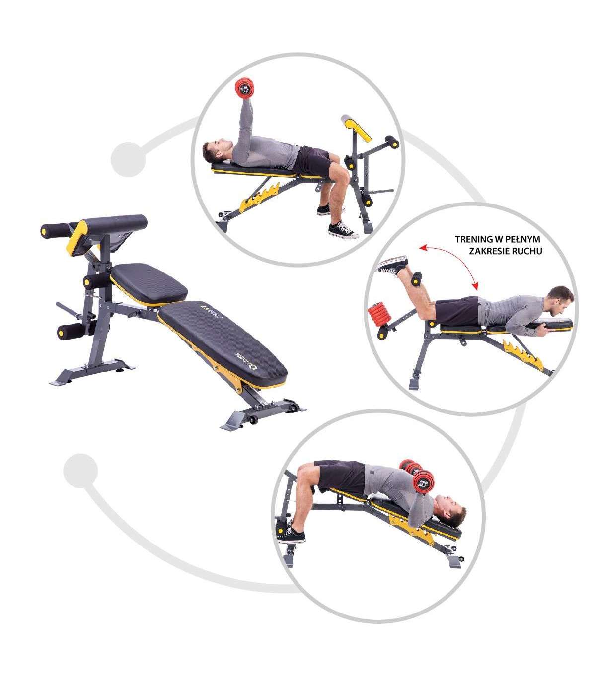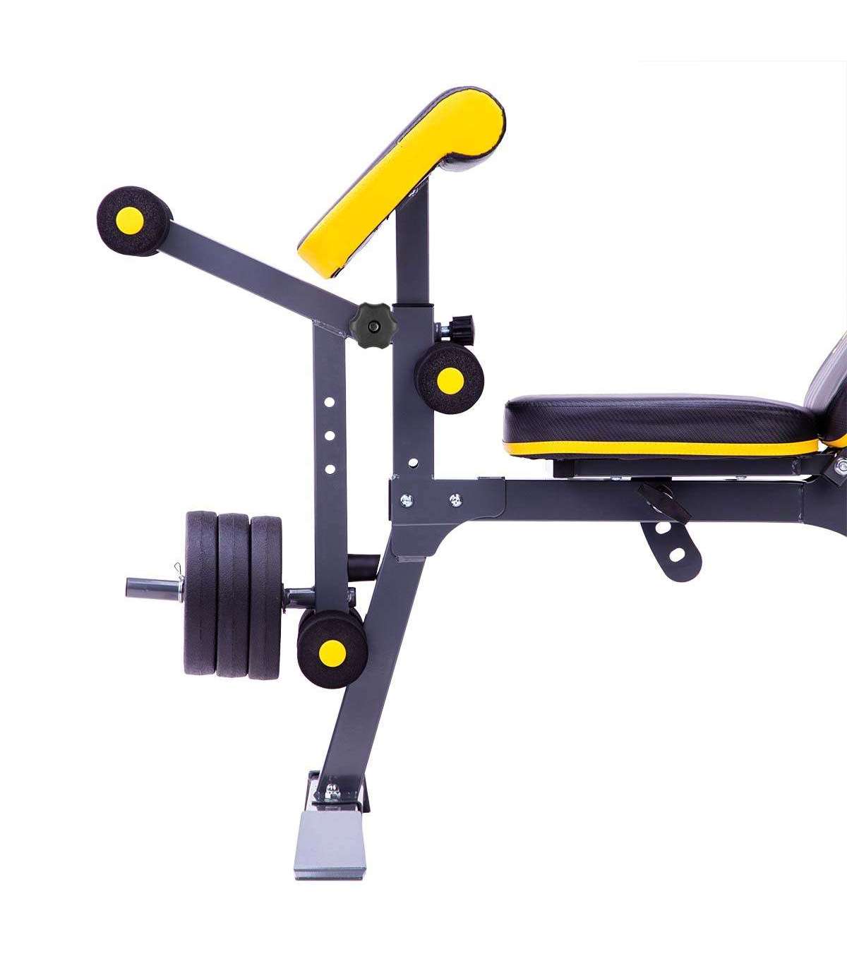 LS3061 HMS PREMIUM is a bench with a prayer bar designed for training with barbells or dumbbells.4 in 1 benchThe bench offers plenty of workout options. Its structure makes it cooperates with a rack perfectly well, as well as it is great for training with dumbbells. Range of adjustment of the backrest angle makes the exercised muscle is fully extended. It is possible to perform exercises for the chest and shoulders. The backrest set diagonally down enables sit-ups. The leg holder guarantees comfort and safety while performing this exercise, engaging abdominal muscles. The bench is equipped with a prayer bar, which increases the range of exercise options by the biceps training. After the prayer bar has been dismounted we gain the ability to perform leg training. Using the leg press one can perform exercises for quadriceps muscles. By placing the bench in a horizontal position, lying on your stomach and hooking your feet you can perform leg bends with a load, thus engaging the quadriceps.Comfort and convenienceSolid board provides stability to the backrest while a soft sponge offers comfort and convenience during a workout. Thickness of the sponge is very important as it has a direct impact on the ideal position of the body. Modern carbon upholstery is resistant to the moisture and the sweat and it prevents the body from slipping during an exercise. It is also very pleasant to touch.Many adjustment possibilitiesThe bench has a wide range of adjustment of the backrest, seat and height of the prayer bar. Such extensive maneuverability of the bench position makes one can freely adjust it to specific height and to a specific exercise.Stylish designThe bench is comfortable and functional, but also stylish. Combination of the black carbon material with yellow embroidered elements gives a great visual effect characteristic for the HMS brand PREMIUM.LS3061 HMS PREMIUM is a must-have item on your home gym equipment list.Specification:Material: steel, foam, wood, PVCDimensions:Length: 165 cmWidth: 56 cmHeight: 78,5 - 122 cmBackrest:Length: 75 cmWidth: 33.5 cmThickness: 6.5 cmSeat:Length: 36.5 cmWidth: 32.5 cmThickness: 6.5 cmPreacher:Length: 28 cmWidth: 41 cmThickness: 5.5 cmHeight: 85 – 97 cmLoad sleeve:Length: 18 cmDiameter: 25 mmAdjustments:Backrest: 6 levels + total slantSeat: 3 levelsPreacher: 4 levels, every 4 cmProfileSize: 50 x 50 mmThickness: 1.3 mmMaximum load (with user): 270 KGMaximum load on the legs: 180 KGProduct weight: 20 kgRemarks:Not intended for commercial use24 months warrantyImporter: Abisal Ltd. | Poland | 41-807 Zabrze | Pyskowicka Street 17 | e-mail: abisal@abisal.plAbisal Ltd.. declares that the products sold by the company are safe and meet the requirements contained in the Act on General Product Safety of December 12, 2003. (Journal of Laws of December 31, 2003)