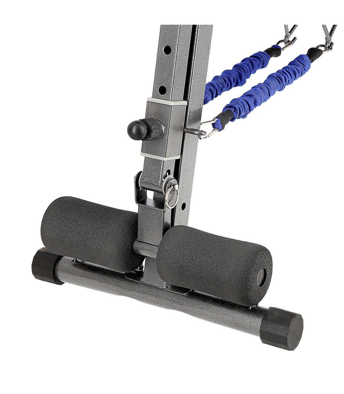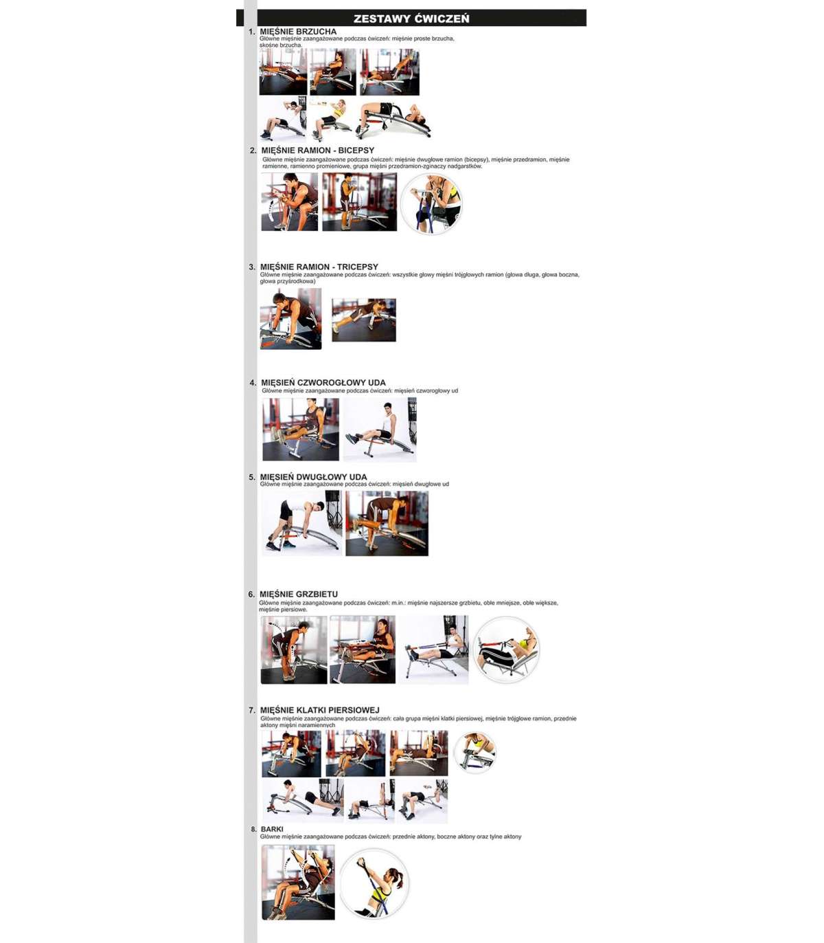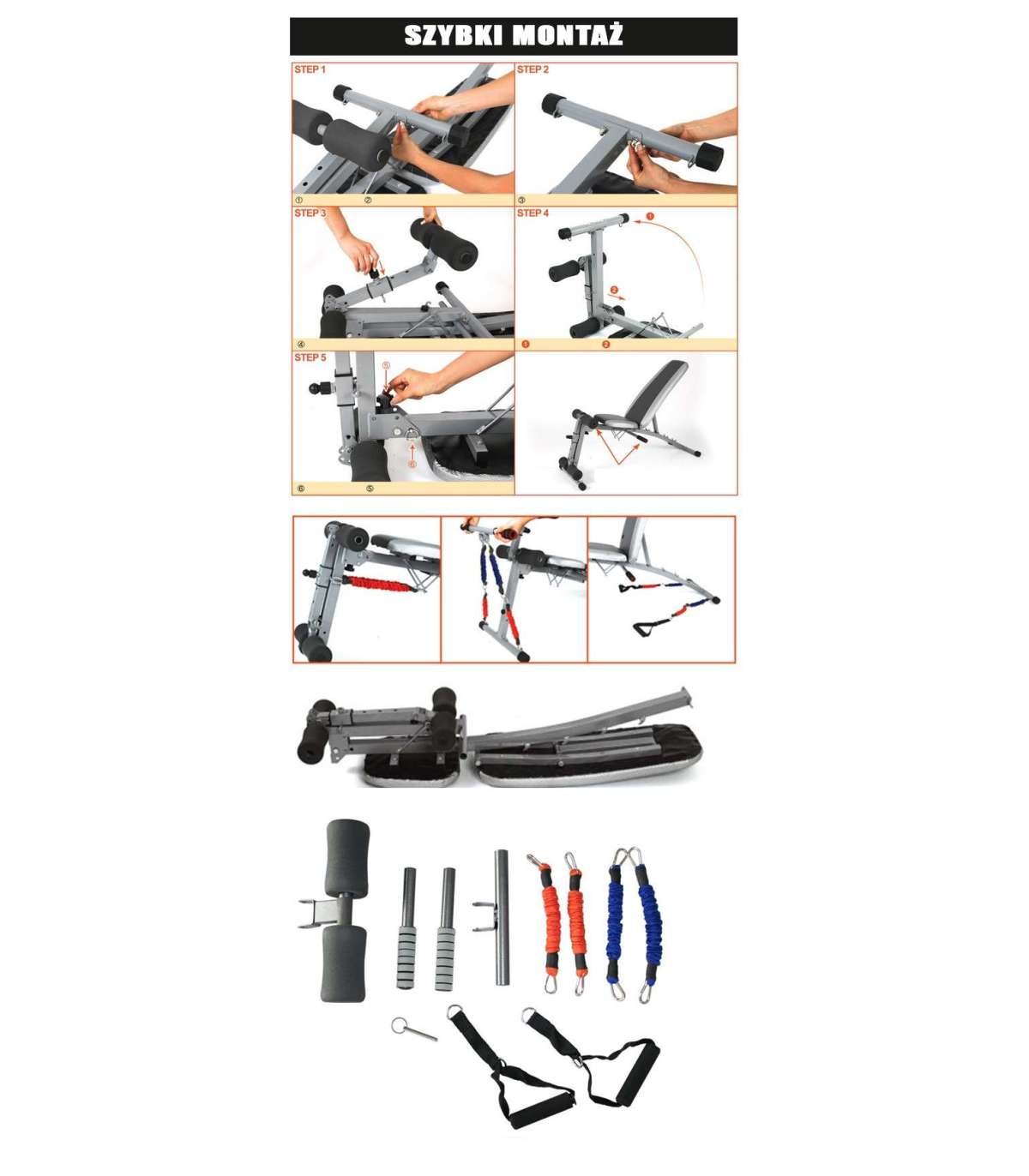 L8320 HMS is a foldable multifunctional strength-training station enabling a full body workout. Included in the set are additional resistance bands of various resistance levels and push-up bars.Durable foam covered with a long-lasting carbon-style upholstery guarantees comfort with a modern touch. The construction ensures safety and maximum stability of the body during workout.L8320 comes with a fully adjustable backrest, which increases your workout possibilities. Now you can work on your physique in every free moment, and perform an intensive training in the comfort of your own home.Possibility to exercise the following muscles:abdominalarm muscles (biceps, triceps)thigh muscles (quadriceps, biceps femoris muscle)back muscleschest musclesshoulder musclesArm exercise rodResistance bands (various tensions)Push-up barsFast and reliable adjustmentAttractive designUniversalSpecification:Multifunctional, to exercise all body partsFolding possibilityNon slip gripsVery stableBackrest adjustment (4 levels)Dimensions (unfolded):length: 155 cmwidth: 44 cmheight: 130 cmBackrest:length: 71 cmwidth: 31 cmSeat dimensions:length: 31 cmwidth: 30 cmWeight: 12,4 kgMaximum user weight: 110 kgRemarks:Not for commercial use24 months warrantyImporter: Abisal Ltd. | Poland | 41-807 Zabrze | Pyskowicka Street 17 | e-mail: abisal@abisal.plAbisal Ltd.. declares that the products sold by the company are safe and meet the requirements contained in the Act on General Product Safety of December 12, 2003. (Journal of Laws of December 31, 2003)