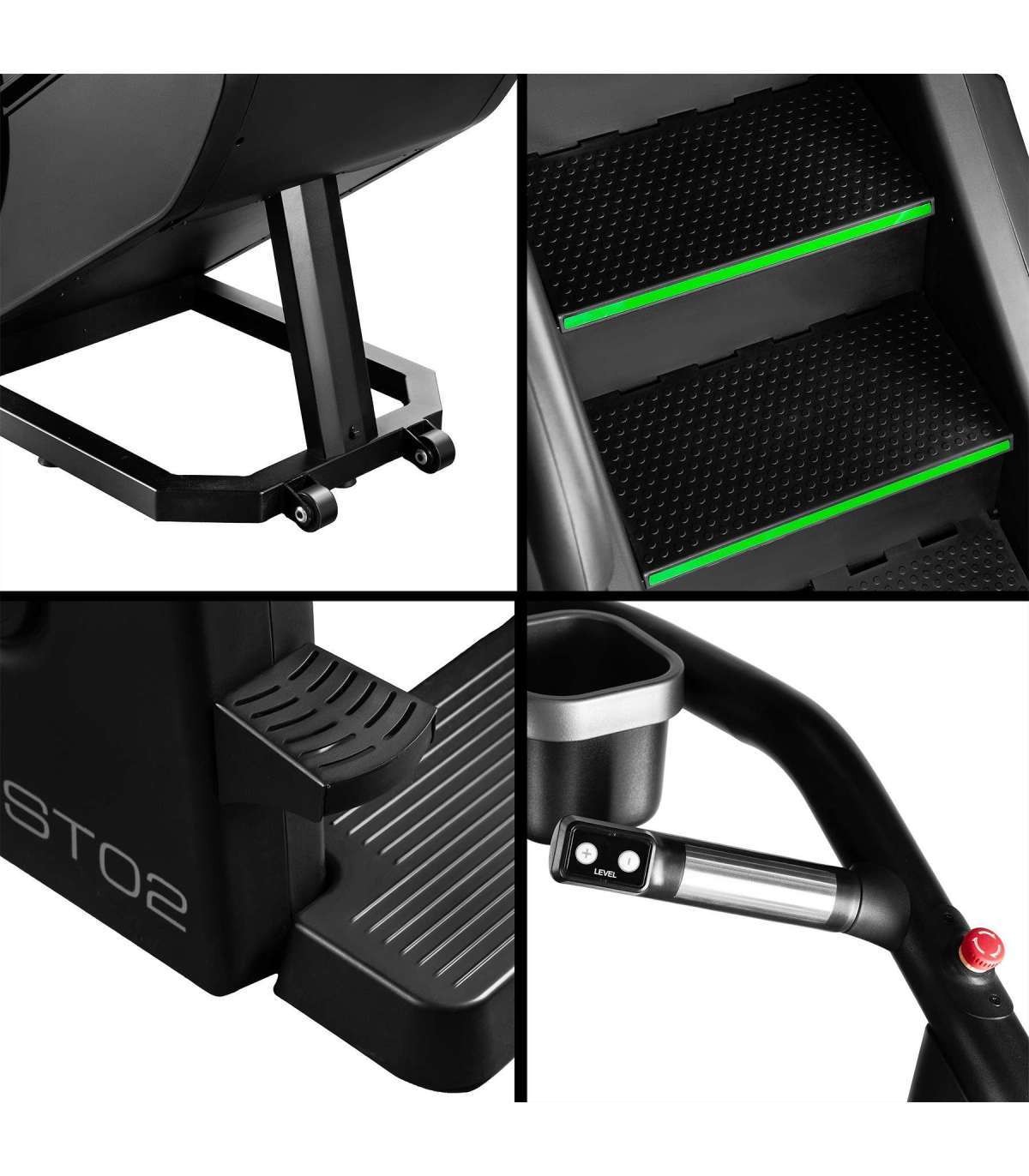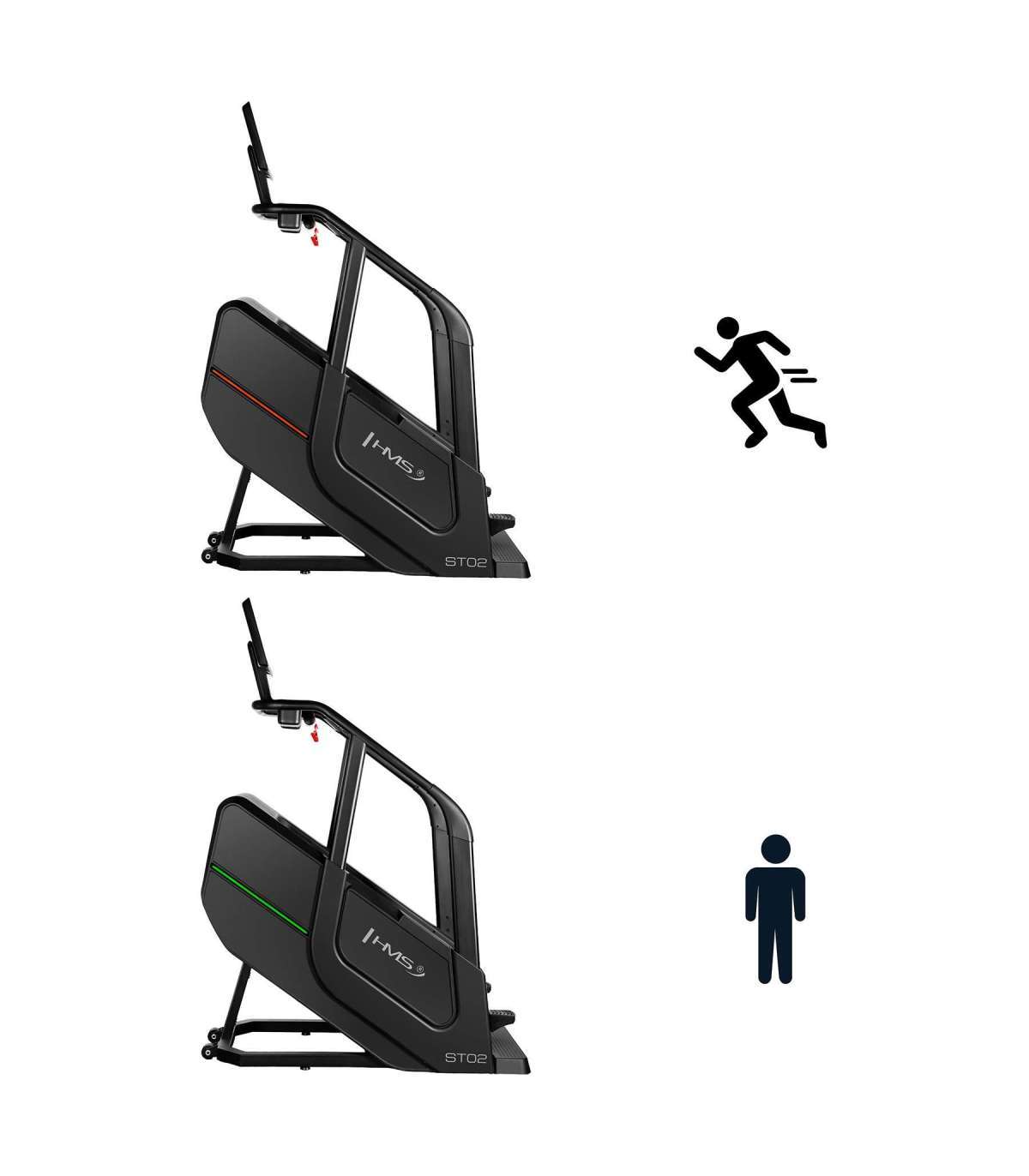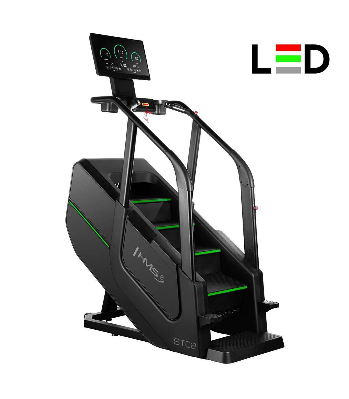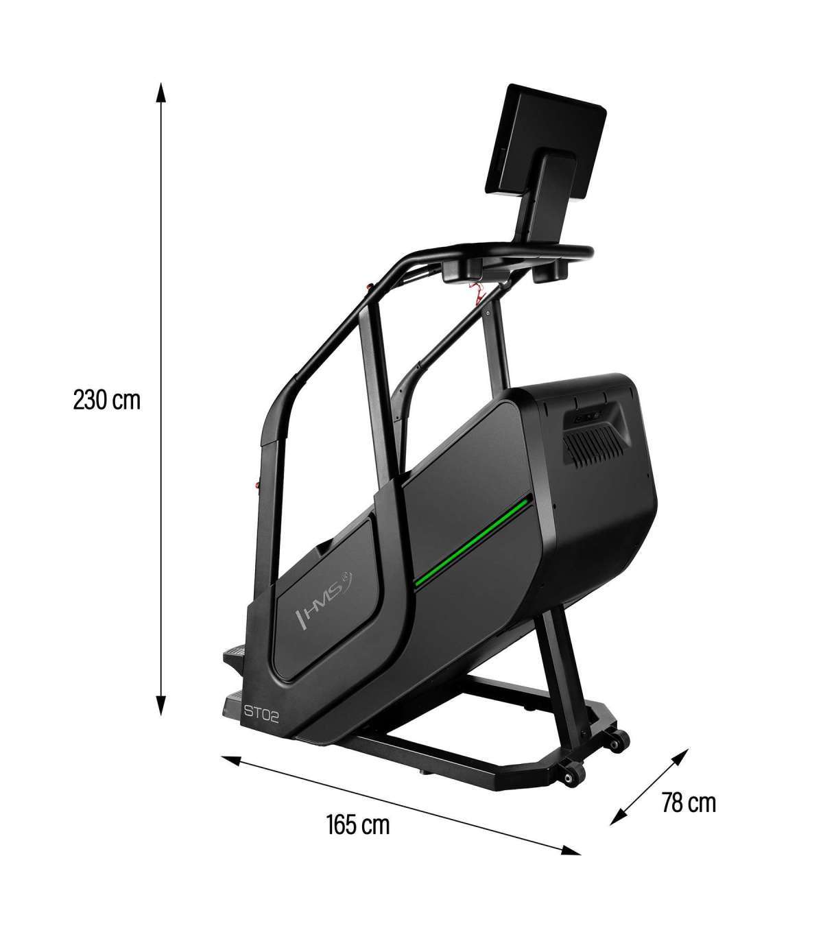 ST02 TRAINING STAIRS COMMERCIAL HMSIntroducing the ST02, an advanced training stairs designed for intensive use in commercial spaces. Thanks to the use of a modern EMS (Electromagnetic System), the device ensures smooth movement and precise control of the intensity of the workout.Wide range of settings and training programmesThe ST02 offers 15 speed levels, allowing you to adjust the pace from 14 to 160 steps per minute, so you can customise the intensity of your workout to suit your needs. The device is equipped with a total of 40 training programmes, including interval and fat burning programmes, which ensures variety and effectiveness of workouts.EMS systemThanks to electromagnetic resistance control, the device operates quietly and without jerks, which significantly improves the comfort of use - especially in commercial spaces such as gyms or fitness clubs. The EMS system also allows for instant adjustment of the level of difficulty, ensuring immediate response to changes in speed settings. In addition, the lack of friction elements means that the mechanism has a longer service life, lower failure rate and does not require frequent maintenance.Advanced measurementsThe ST02 stair climber measures speed, number of steps, height, time, calories burned, pulse and body fat, enabling you to monitor your progress and adapt your training to your individual goals. A wireless charger allows you to conveniently charge your mobile devices while exercising. The intuitive control panel with speed control buttons and a start/stop button on the handlebar ensures simple and quick operation.Safe useThe device is characterised by a durable construction, which guarantees stability during intensive workouts. Non-slip steps and a 35-degree incline ensure comfort and safety. A self-locking system and automatic stop in case of no load or load below 30 kg further increase the level of safety.Intelligent lightingThe training stairs have been equipped with a well-thought-out lighting system that not only serves an aesthetic function, but also an informative one. A soft green light appears when the device is connected to the power supply and ready for use. A red backlight indicates that the equipment is active and training is in progress. When the steps are disconnected from the power supply, the backlight goes out completely. It is a subtle but very practical way to intuitively control the status of the device.Adapted to user requirementsThe electromagnetic stair climber is designed for users weighing up to 160 kg, making it suitable for a wide range of exercisers. The roll-off protection provides additional stability and safety during use. By choosing the ST02 training staircase from HMS Fitness, you are investing in a professional device that will raise the standard of your sports facility and provide customers with satisfying and effective workouts.Specification:Dimensions: 165 x 78 x 230 cmEMS (electromagnetic resistance) systemComputer: LEDTotal number of programmes: 40Functions:Step counterPulse (touch sensors)HeightSpeed (15 levels/14-160 steps per minute)TimeCalories burnedBody fat measurementNumber of steps: 9Number of active steps: 3Stair angle: 35 degreesAutomatic stopRolling protectionTwo bottle holdersSafety keyTransport wheelsInduction chargerDimensions of one step: 49.5 x 25 cmDimensions of monitor: 33.5 x 56.5 cmMaximum user weight: 160 kgClass: SBProduct weight: 175 kgRemarks:2-year warranty for home use 1-year warranty for commercial useImporter: Abisal Ltd. | Poland | 41-807 Zabrze | Pyskowicka Street 17 | e-mail: abisal@abisal.plAbisal Ltd.. declares that the products sold by the company are safe and meet the requirements contained in the Act on General Product Safety of December 12, 2003. (Journal of Laws of December 31, 2003)