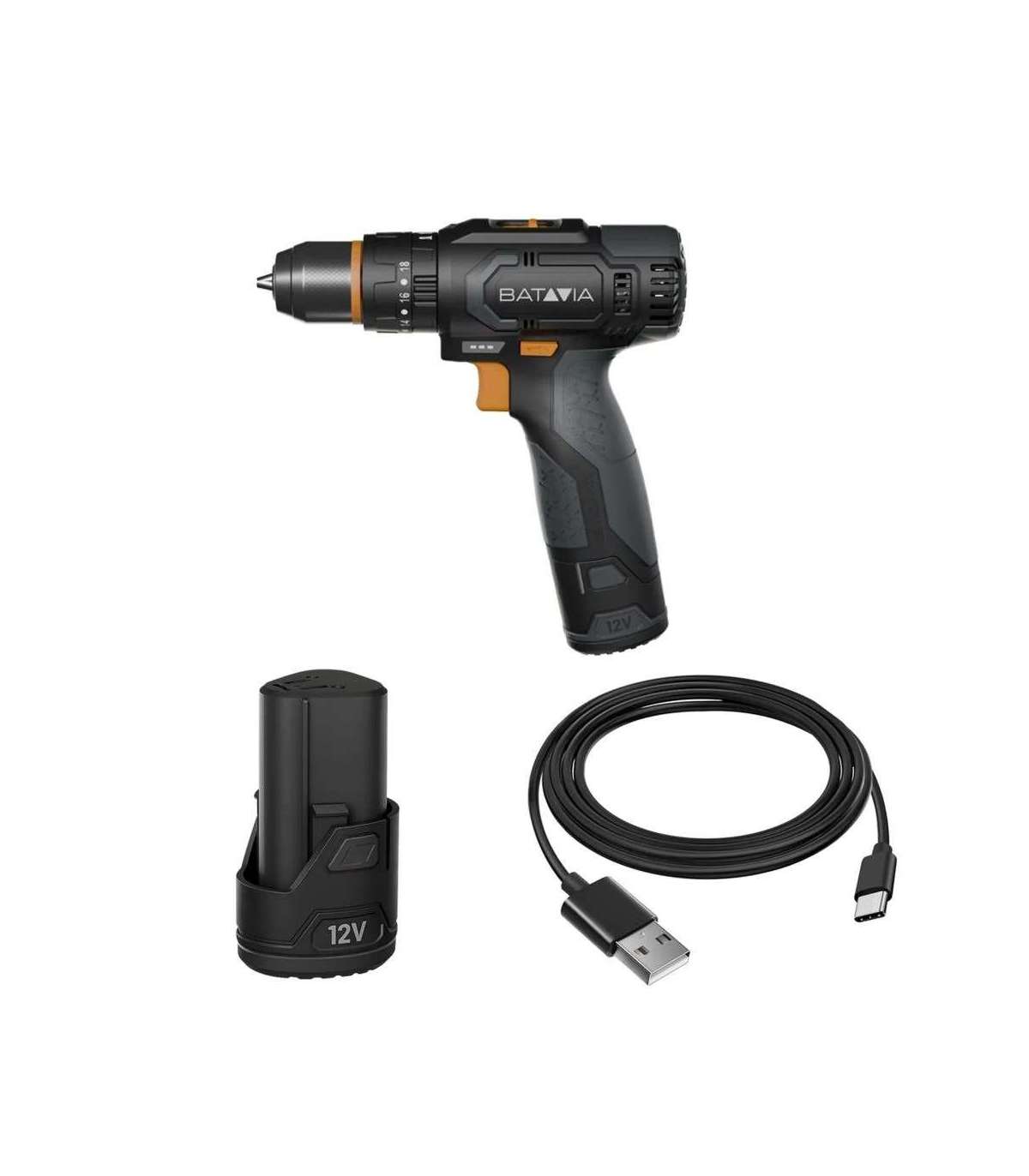 Batavia 12V combi drill 2.0 set (1 x battery 2Ah / 1 x USB charging cable)
