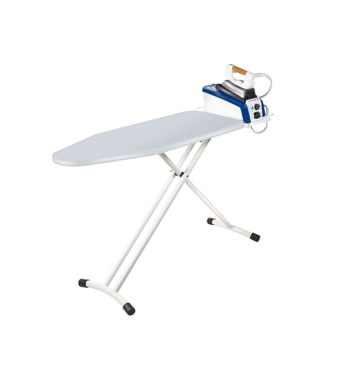 - Professional ironing board for steam generator irons with reinforced frame. Easy opening system. 4 position adjustable height. Vertical safety lock. High performance padded cotton cover allows steam to pass through.