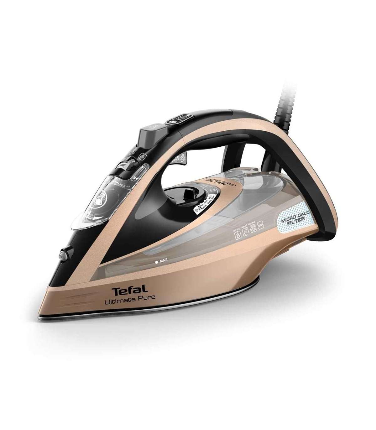 Tefal Ultimate Pure FV9852E0 iron Dry & Steam iron Durilium AirGlide Autoclean soleplate 3200 W Black, Copper