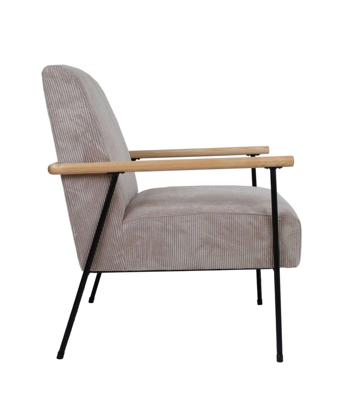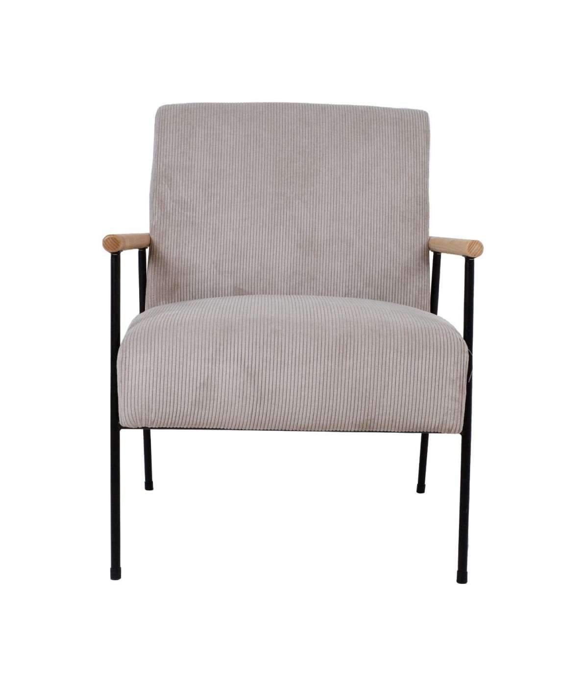 Must metallraam, käetugedel naturaalne puit. Iste on kaetud pehme ja trendika triibulise kangaga.