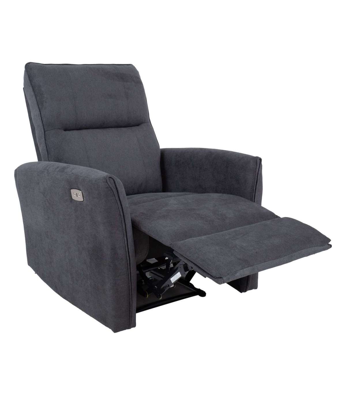 Tugitool LINUX elektriline recliner 76x94xH102cm, tumehall. Recliner tüüpi tugitooli jalatoe asendit on võimalik muuta elektrilise mehhanismi abil. Jalatuge üles tõstes liigub seljatugi sujuvalt kaasa. Kattematerjal: 100% polüesterkangas. Karkass: puit, vineer ja metall. Polsterdus: polüuretaanvaht 28kg/m³.