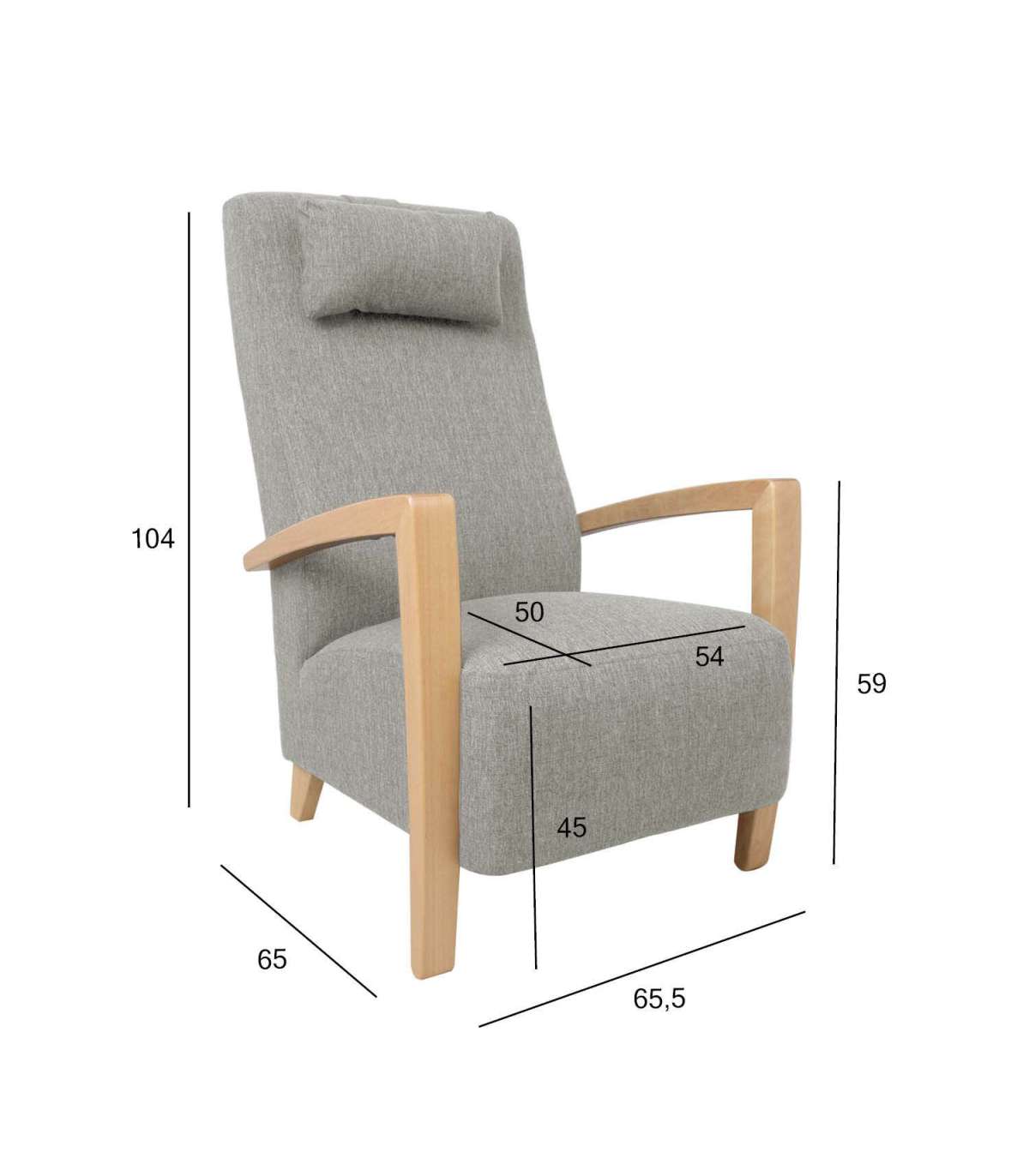Tugitooli üldmõõdud on 65,5x65xH104cm. Istme laius 54cm, istme sügavus 50cm. Seljatoe kõrgus 77cm. Käetoe kõrgus maast 59cm.