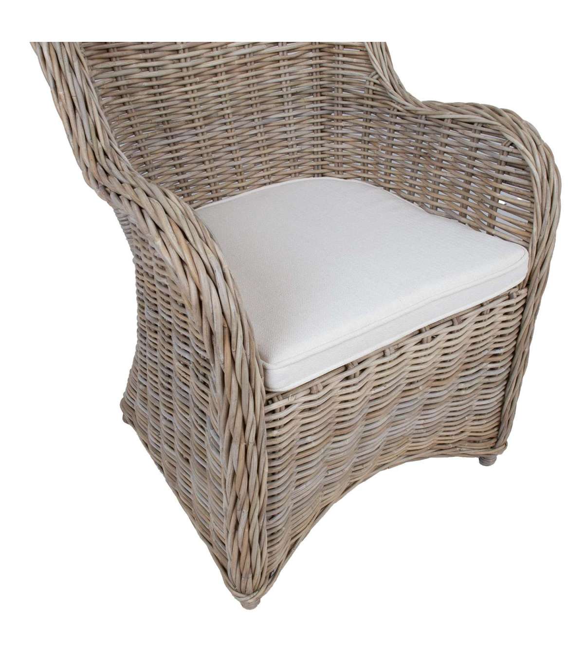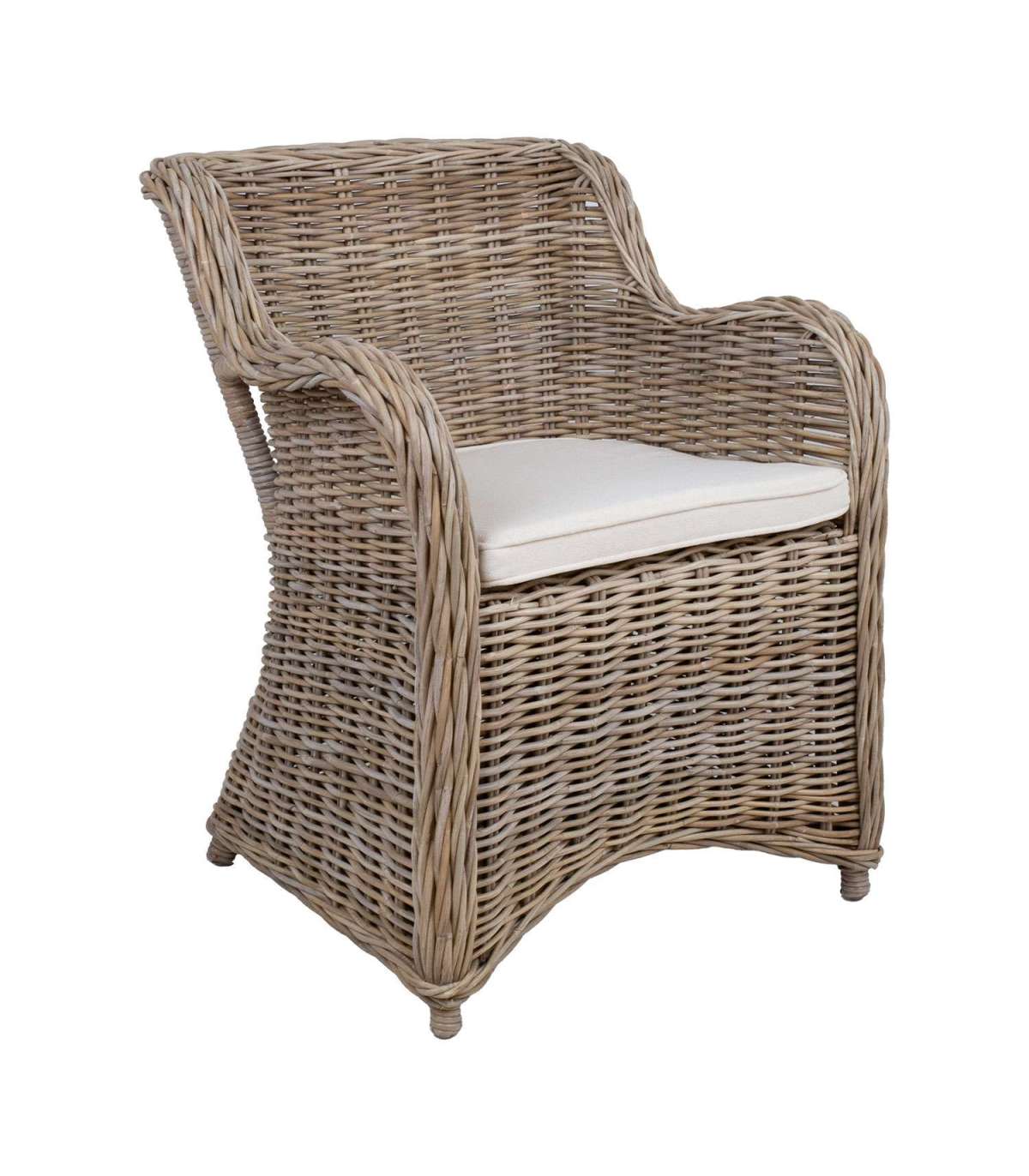 Tugitool KATALINA. Käsitööna valminud rotang tugitool on stiilne ja kaunis sisustuselement hubase ja looduslähedase atmosfääri loomiseks. Tooli raam on valmistatud painutatud rotangist ja kaetud üleni kubu rotangist punutisega. Istmepadi kuulub komplekti. Tooli üldmõõdud on 62x62xH83cm. Tooli istmepadja mõõdud on 46x48xH5cm, istme kõrgus (koos padjaga) 50cm. Käetoe kõrgus maast on 67cm. Kaalupiirang 100kg. Rotangpunutise hall värvitoon on looduslik ja selle saavutamiseks ei ole kasutatud kunstlikke värvaineid. Rotangmööbel on aastaringselt kasutatav siseruumides ning sobib hästi katusega terrassile või klaasitud rõdule. Mööblit võib kasutada välitingimustes, kuid tuleb meeles pidada, et rotangmööbel ei ole ilmastikukindel.