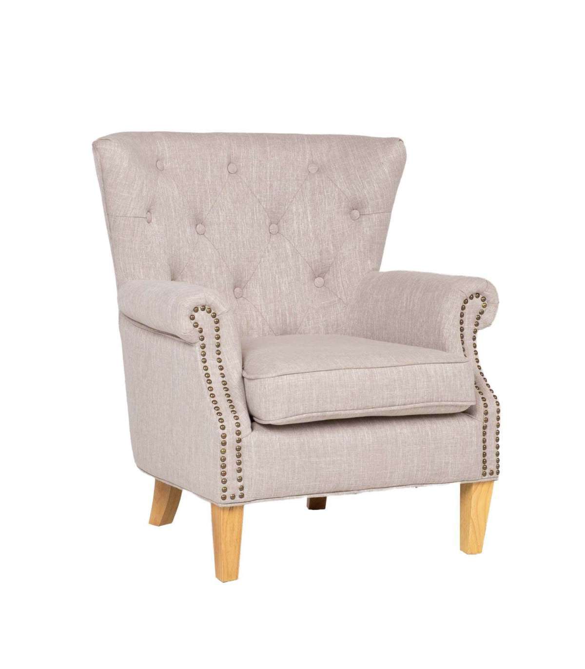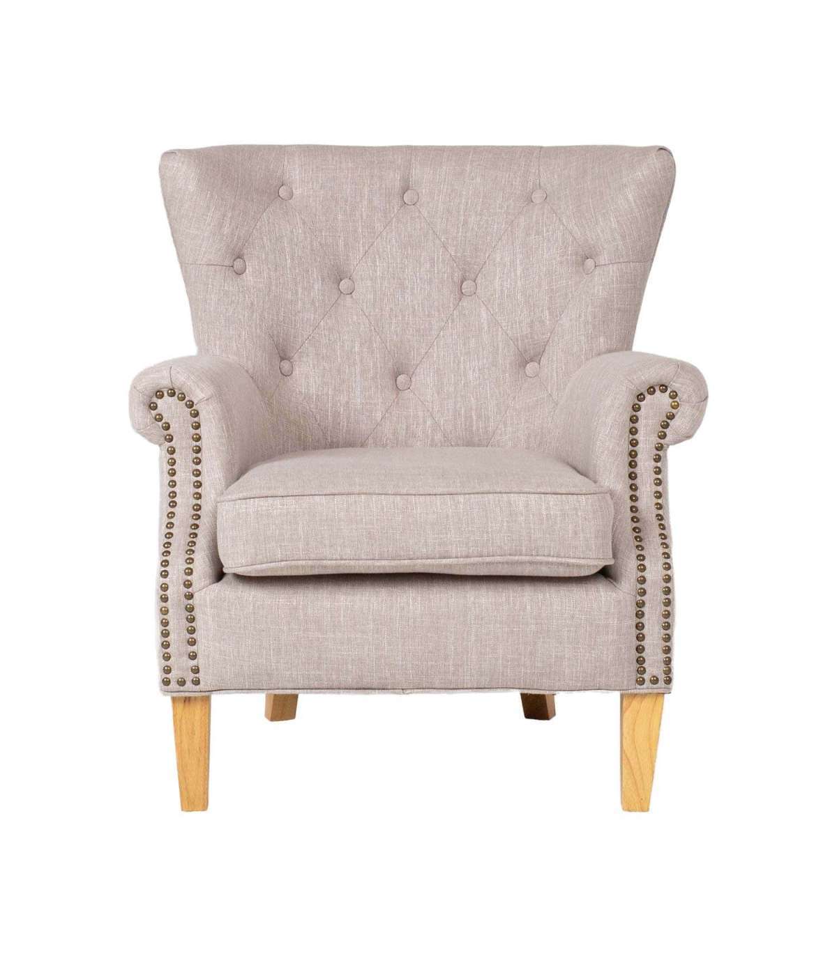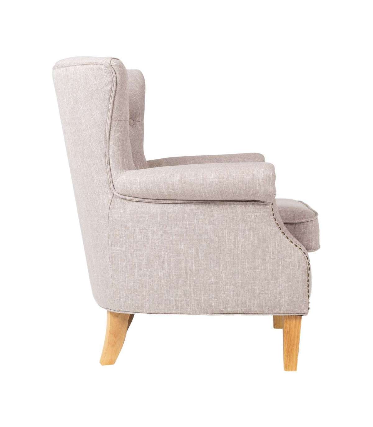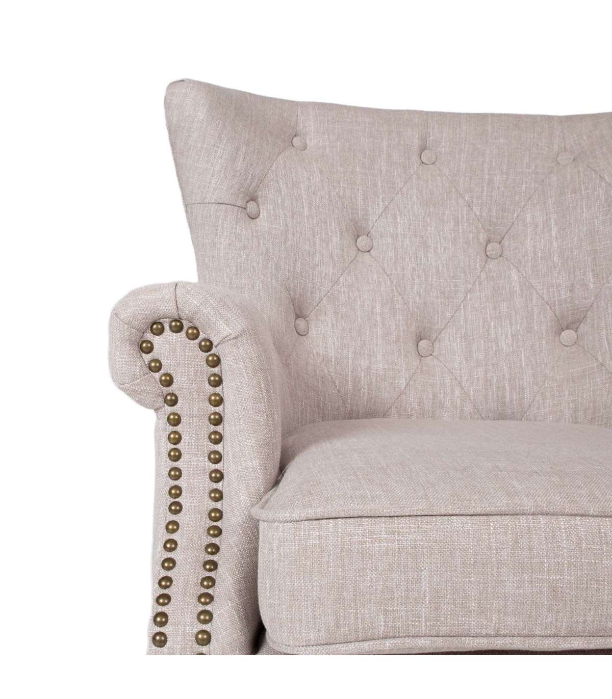 Tugitool on kaetud beeži linase välimusega kangaga.