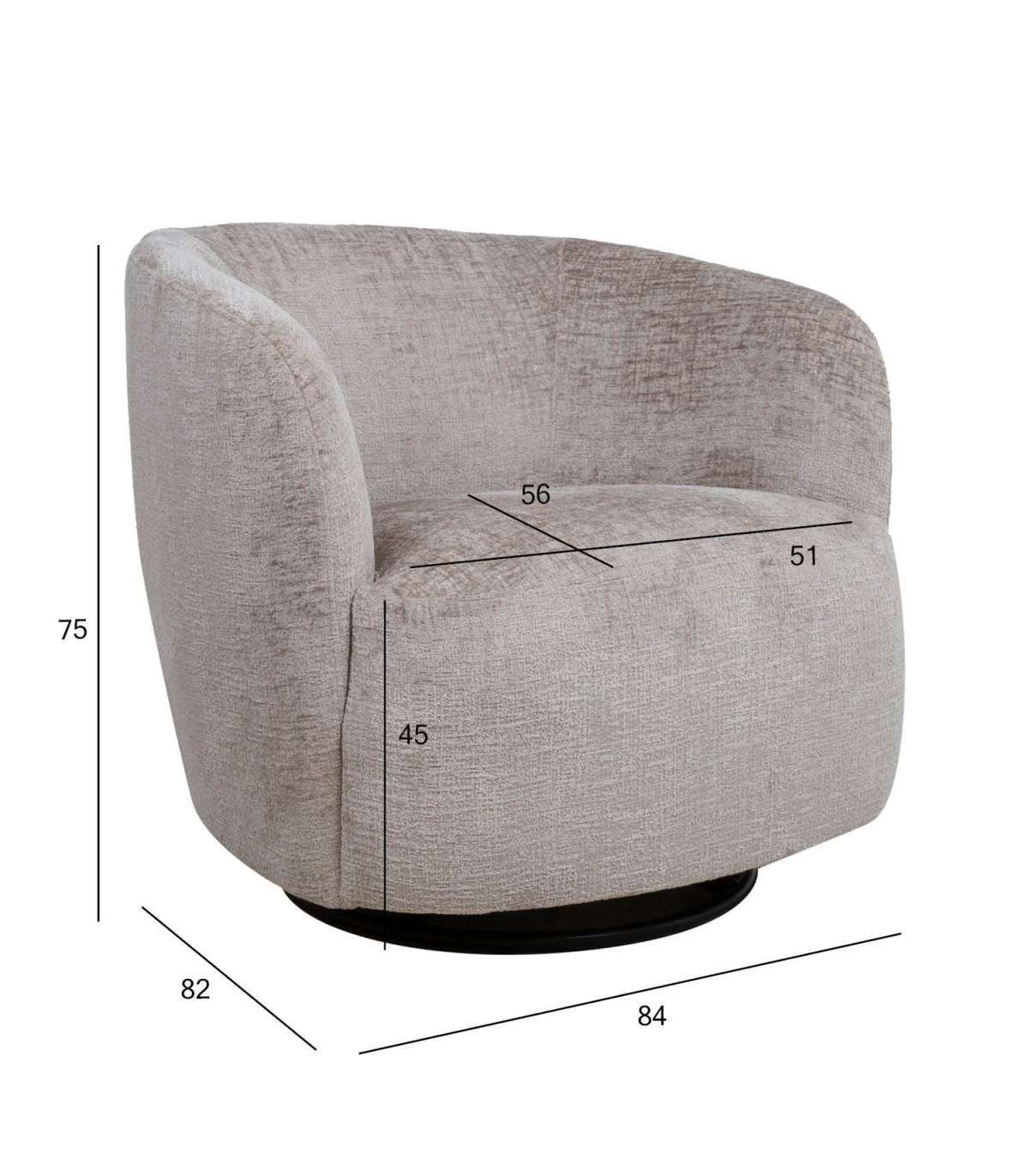 Tooli üldmõõdud on 84x82xH75cm. Istme laius 51cm, istme sügavus 56cm, istme kõrgus 45cm.