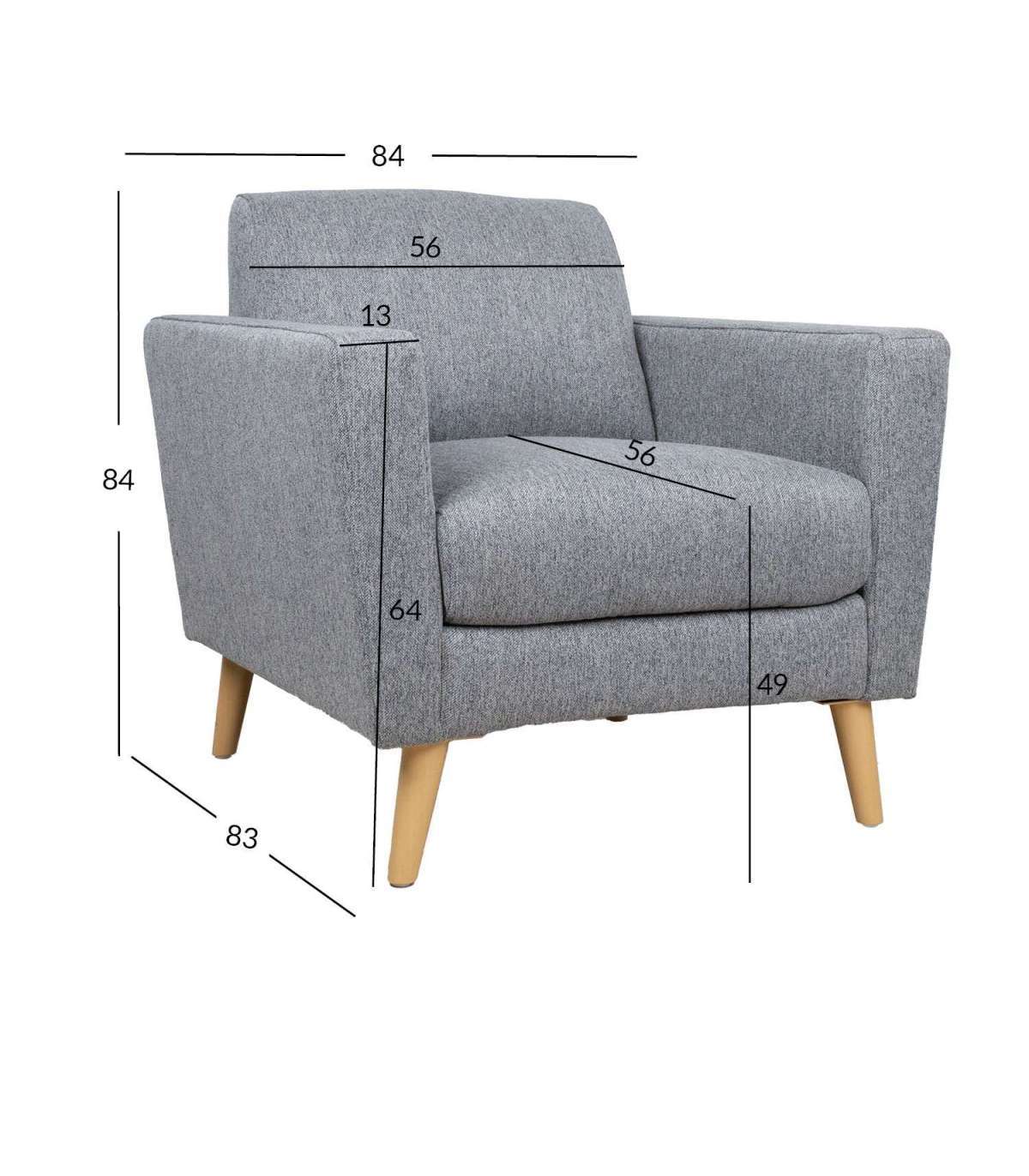 Tugitooli üldmõõdud on 84x83xH84cm. Istme laius 56cm, istme sügavus 56cm, istme kõrgus 49cm. Käetoe kõrgus maast 64cm, käetoe laius 13cm.