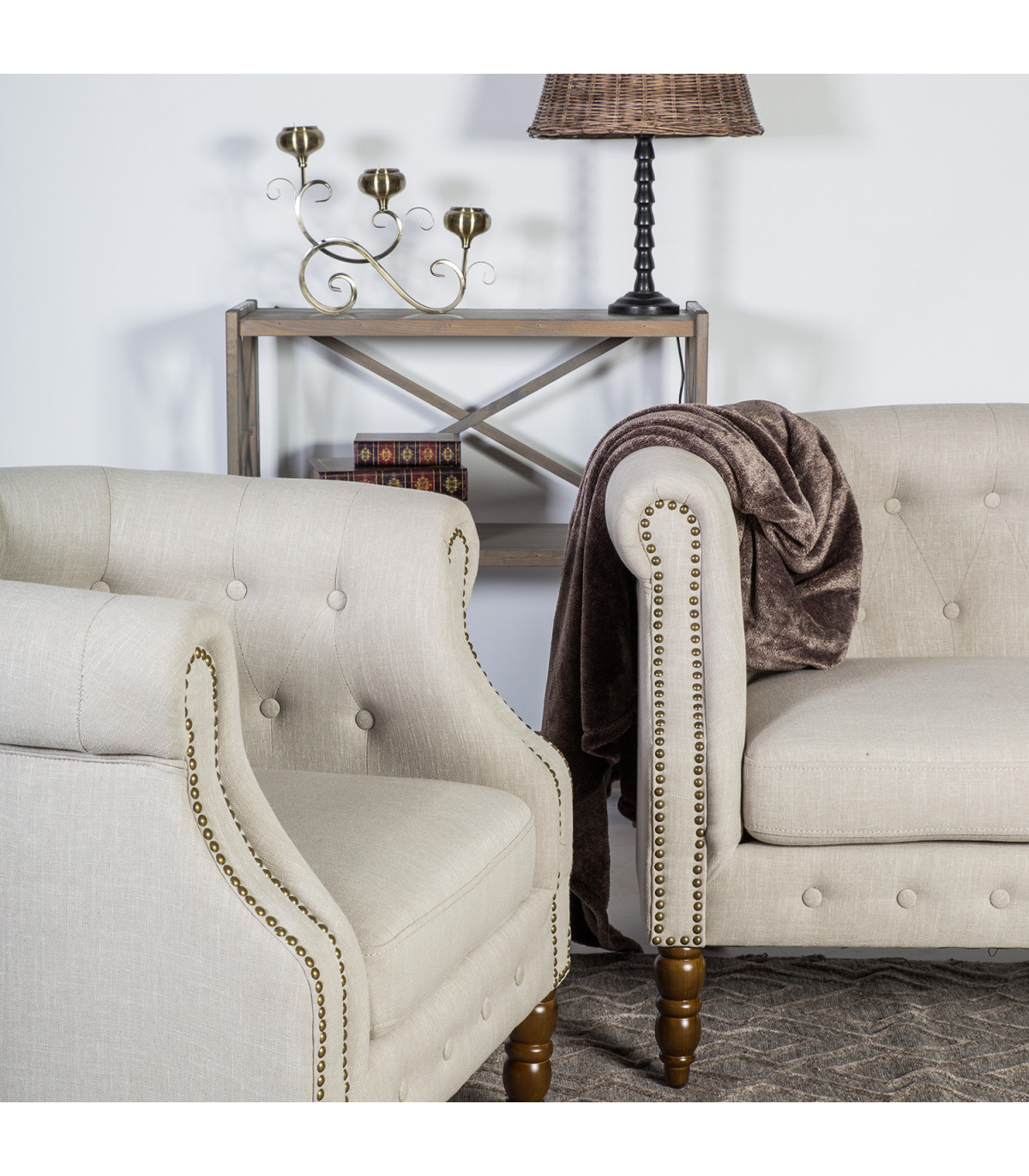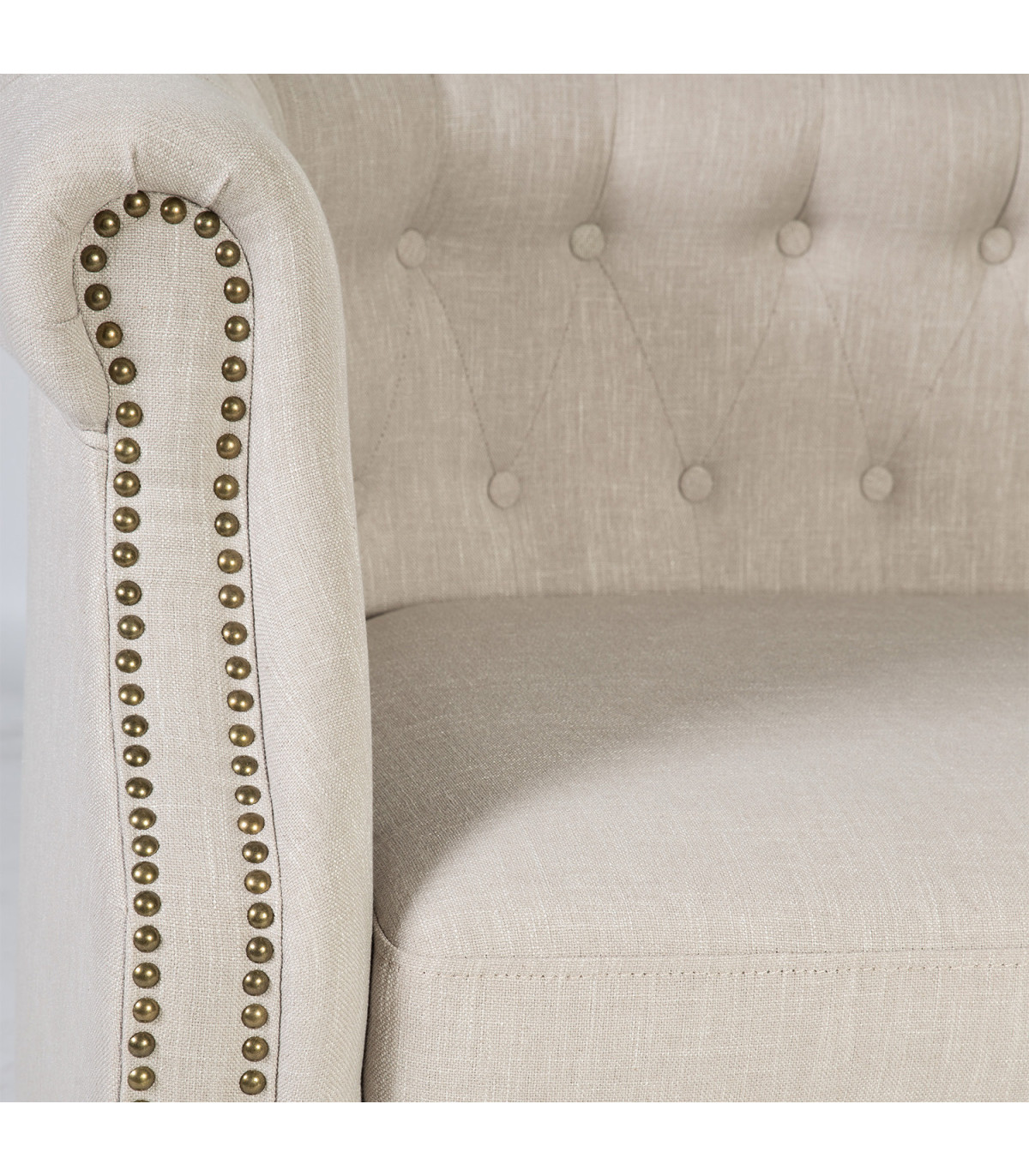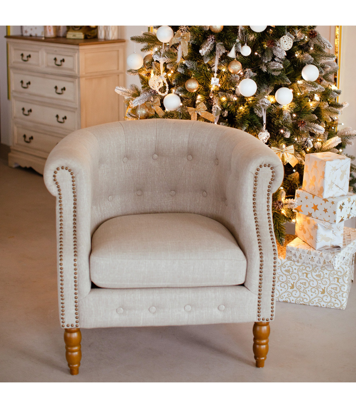 Tugitool HOLMES bee˛. Tugitool on kaetud bee˛i linase välimusega kangaga. Kattematerjal: 57,7% polüester, 25,7% viskoos, 16,6% linane kangas. Polsterdus: polüuretaanvaht. Tugitoolil on puidust jalad. Tugitooli üldmõõdud on 83x75xH78cm.