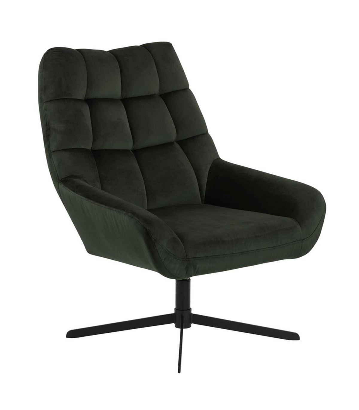 Ümara istmega tugitool ruudukujuliste õmblustega pakub pehmet tuge ja on moodsa ilmega. Tumerohelist värvi sametkangas lisab toolile iseloomu. Musta värvi pöörlev alus täiendab istet. Mõõdud 73x82xH88cm.