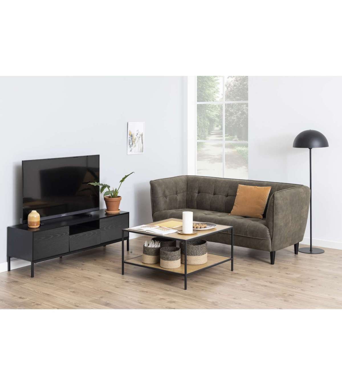TV-laud SEAFORD 140x40xH45cm, must. Klassikalise vormiga ajatu TV-laud, millel on kaks kinnist ja üks avatud panipaik ning üks sahtel. TV-laual on ava juhtmete korrashoiuks. Materjal: mustaks värvitud MDF, 2 ust ja sahtel: melamiin, alus: mattmust pulbervärvitud metall.