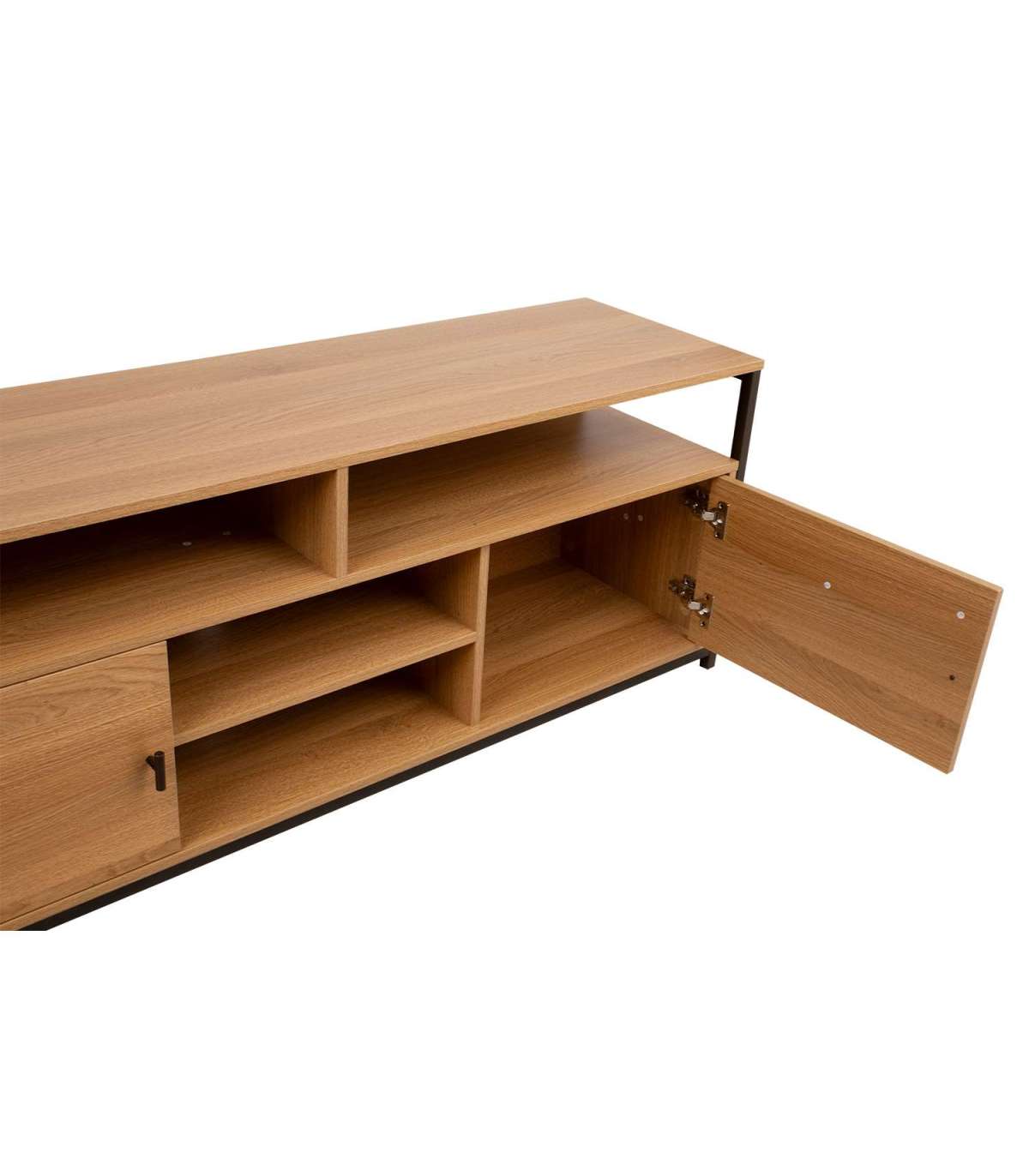 TV laud STUDY 150x40xH54cm, tamm/must. Korpus ja uksed: tamme dekooriga melamiinplaat. Raam on valmistatud metallist ja viimistletud musta pulbervärviga.