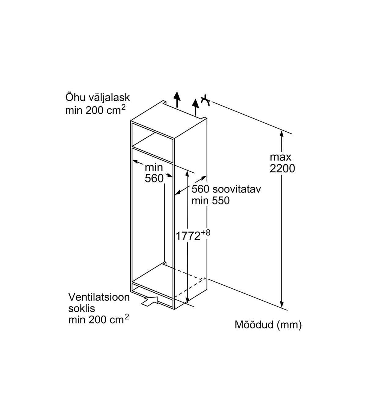 Seeria 6 Integreeritav külmik koos sügavkülmutussektsiooniga 177.5 x 56 cm pehmelt sulguva lameda hingega