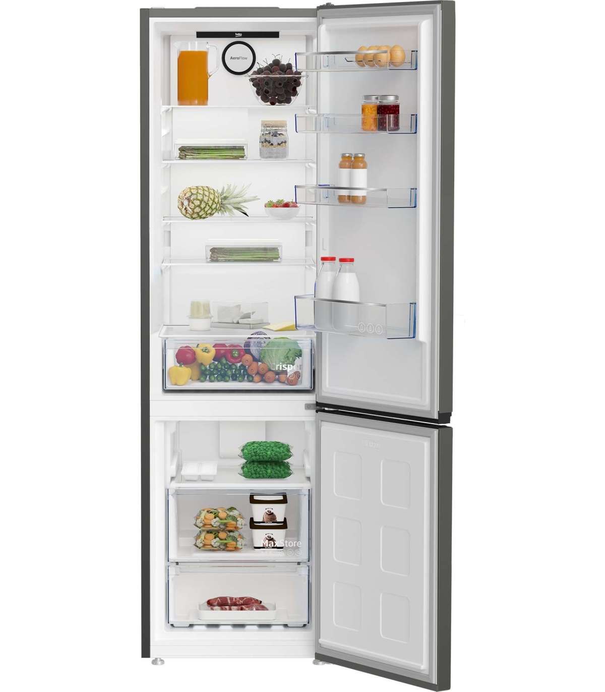 BEKO Refrigerator B1RCNA404G, height 203.5 cm, Energy class E, NeoFrost, AeroFlow, Grey