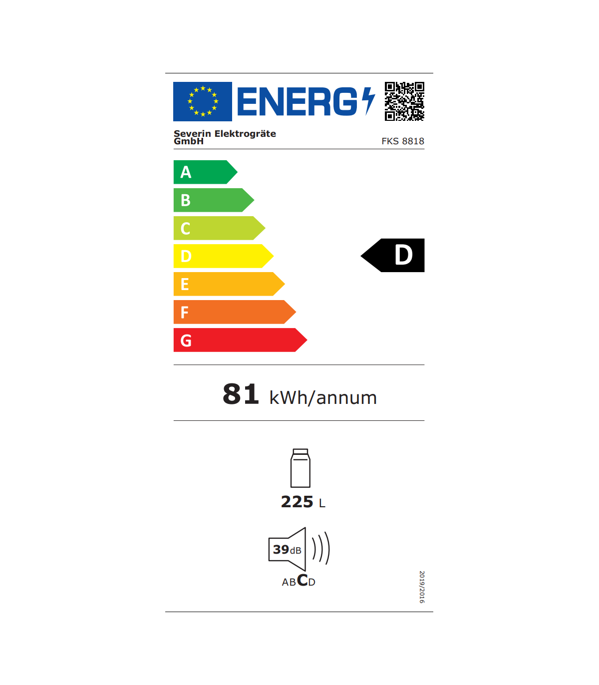 Ainult 39 dB töömahuga jääb pudelikülmik tagaplaanile ja sobib ideaalselt elutuppa või kontorisse.
