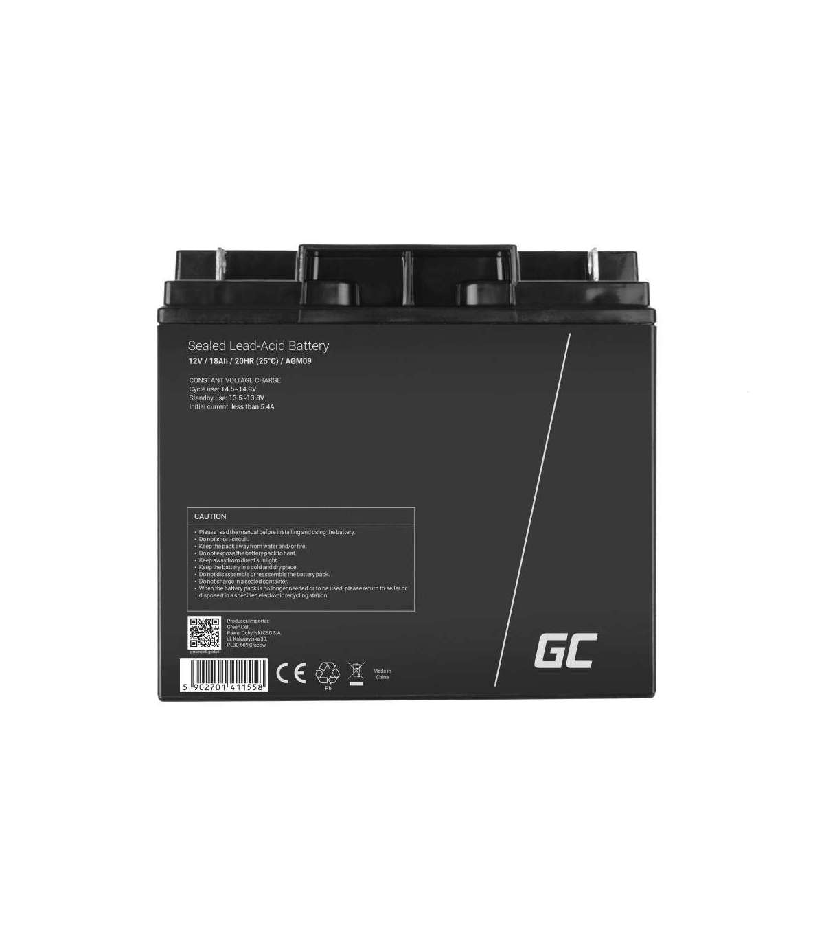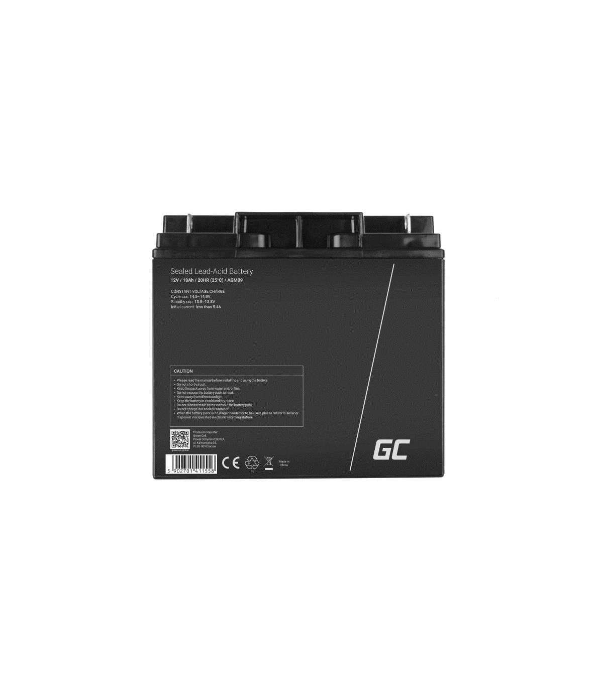 Green Cell AGM09 industrial rechargeable battery Sealed Lead Acid (VRLA) 18000 mAh 12 V
