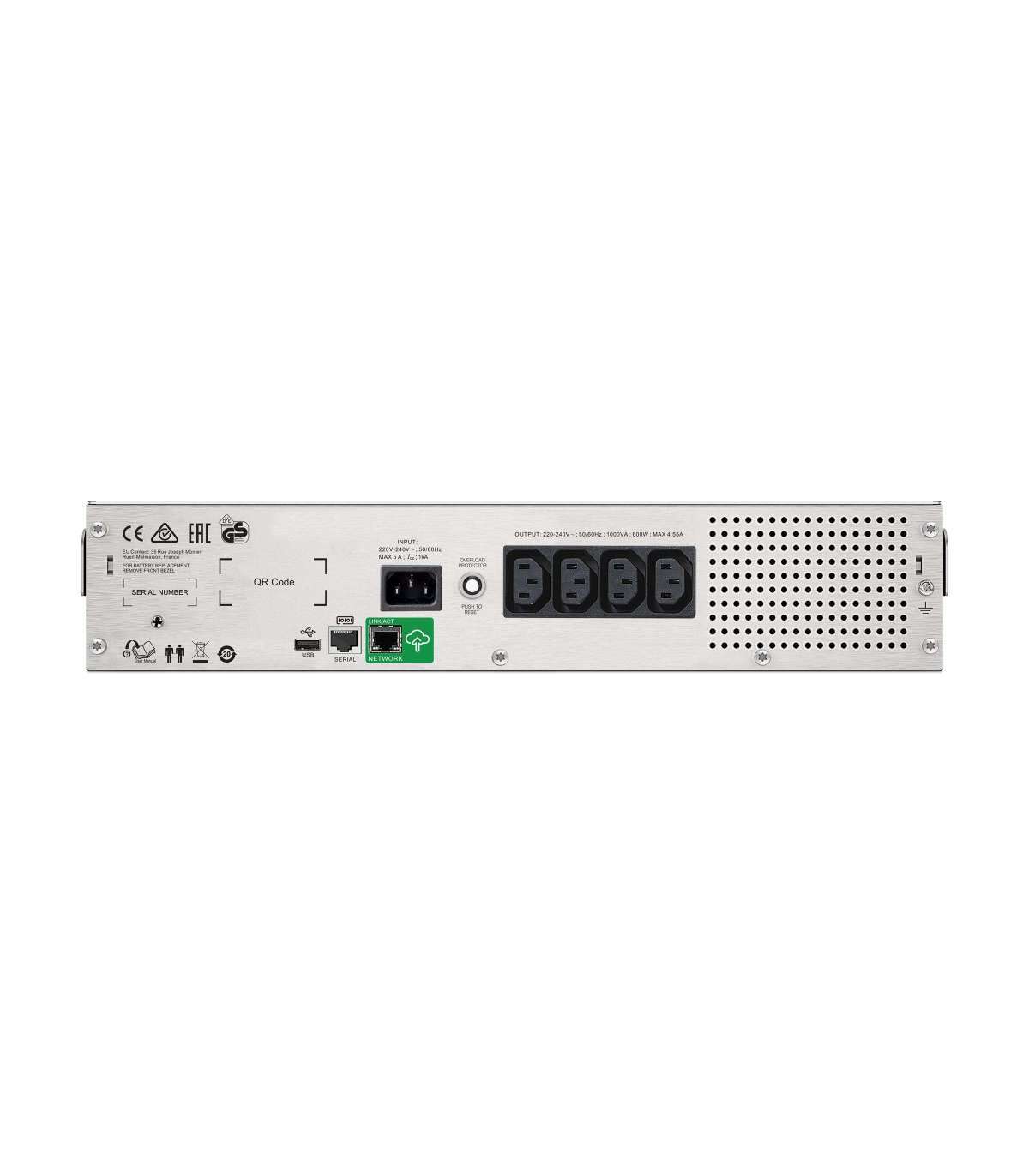 - APC Smart-UPS C, Rackmount 2U, 4x IEC C13 outlets, SmartConnect port, USB and serial communication, AVR, graphic LCD