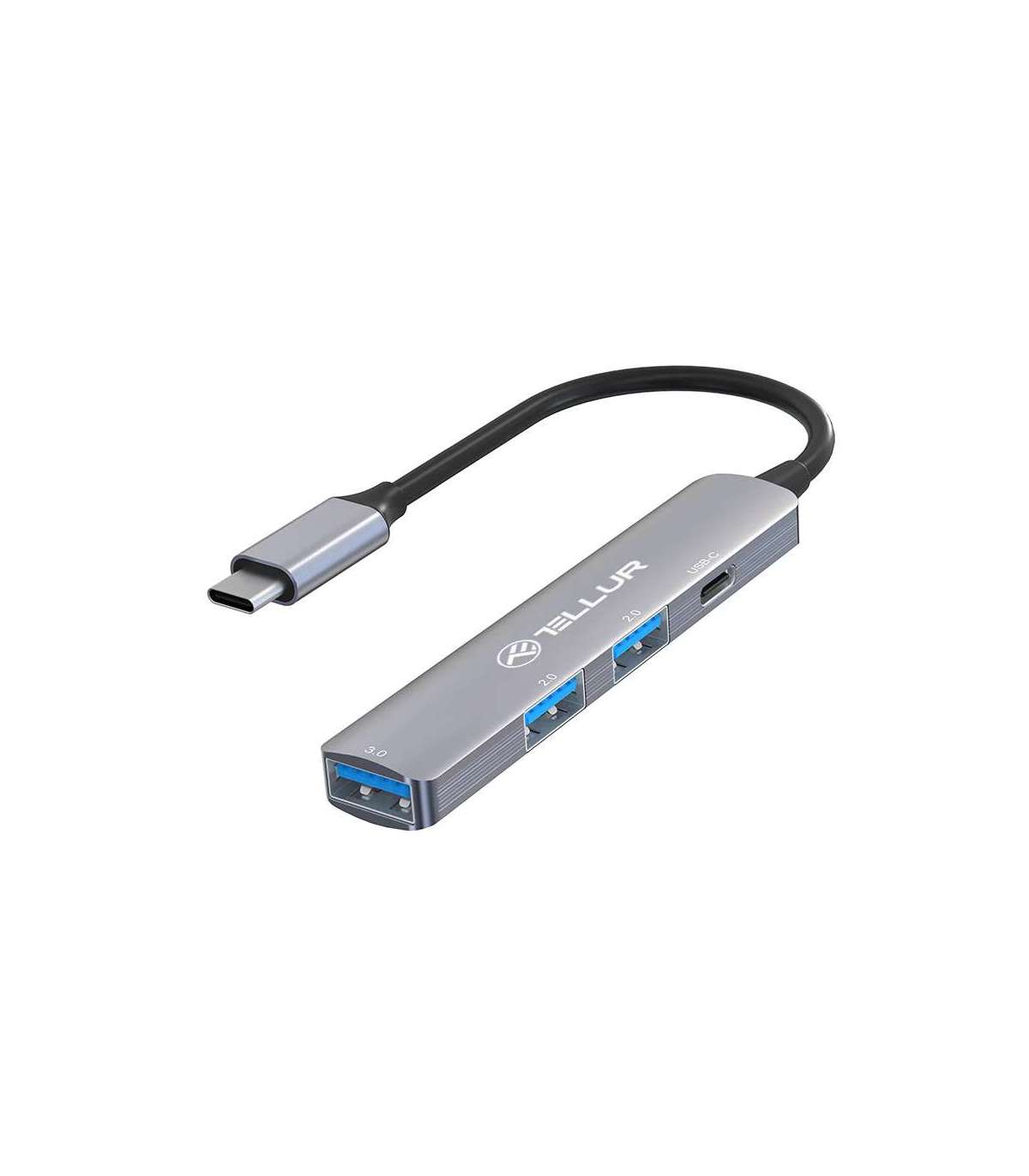 Tellur 4in1 USB-C 3.1 Hub Aluminum, Grey
