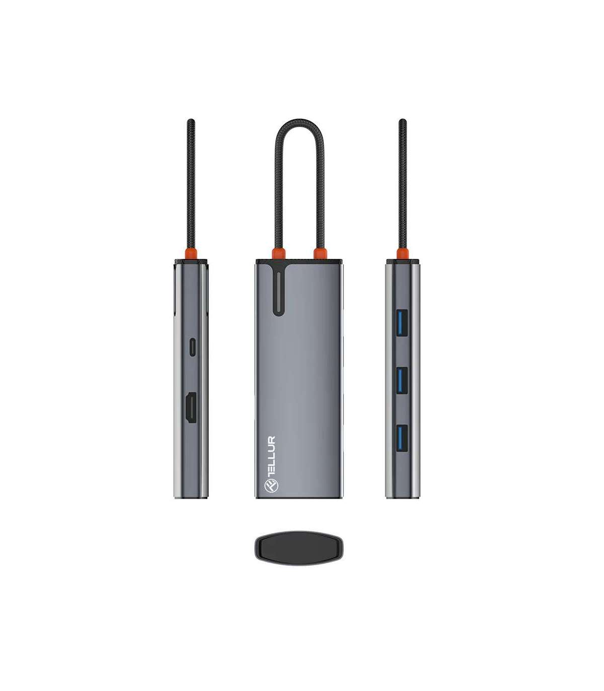 Tellur USB-C hub, PD 3.0 100W, HDMI, 3xUSB 3.0 grey