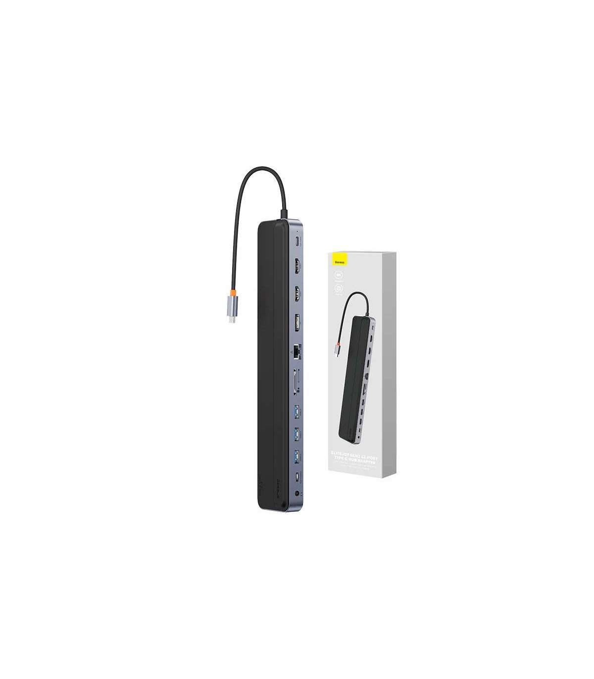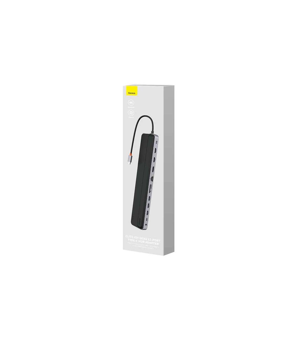 Hub 12in1 Baseus EliteJoy Gen2 series USB-C to 2xHDMI+ 3xUSB 3.0+ PD+ DP+ SD/TF+ RJ45+Type-C+ 3.5mm (dark gray)