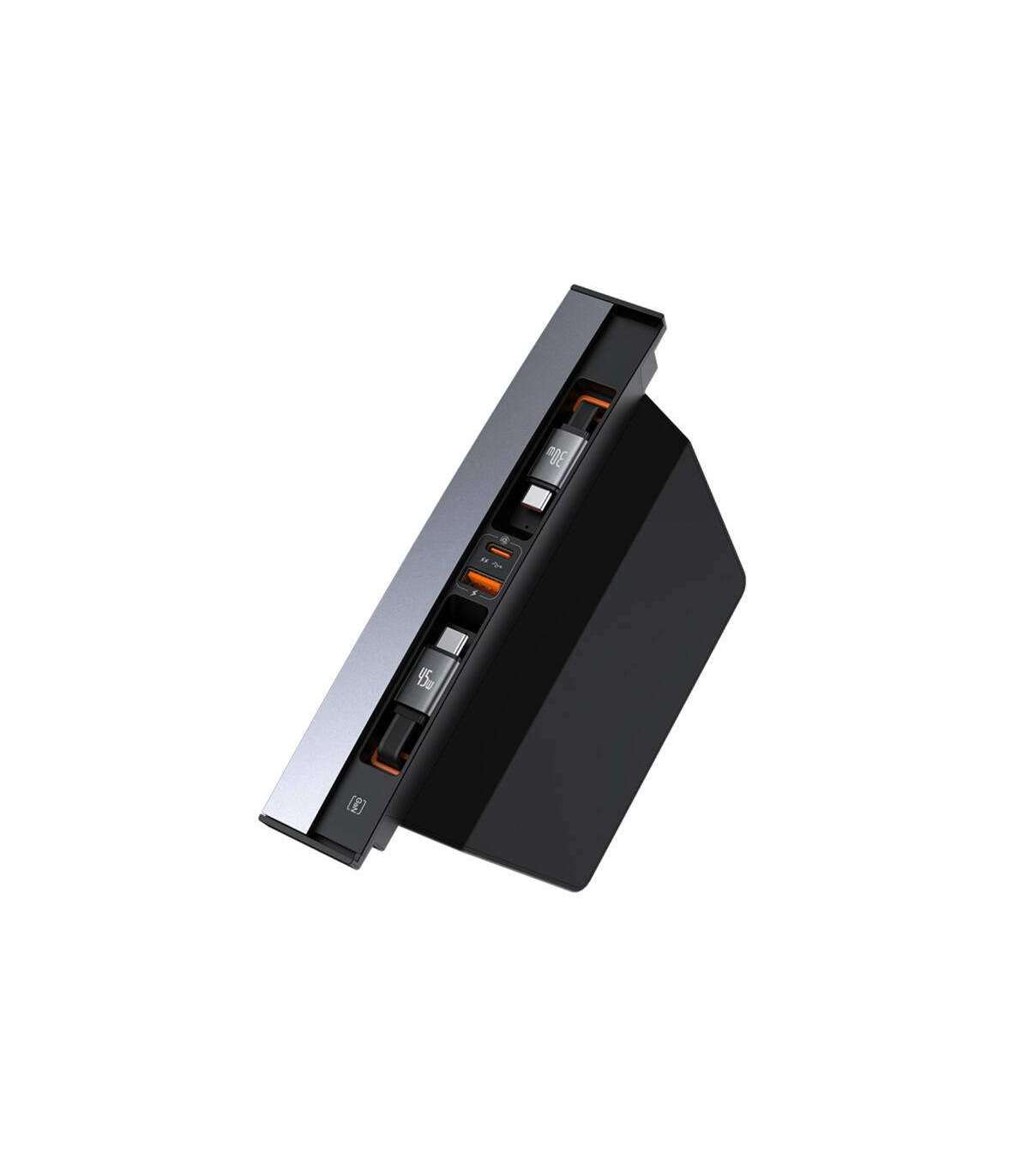 The Baseus T-Space hub is specially designed for Tesla. It offers built-in USB-C and USB-A ports and 2 retractable USB-C cables, so you can charge 4 devices at once. By utilizing 45 watts of power, you won't have to wait long before your smartphone is ready to continue charging. What's more, the Baseus Power Split 2.0 automatically adjusts the charging power to the connected equipment - you can rest assured that they are safe.
